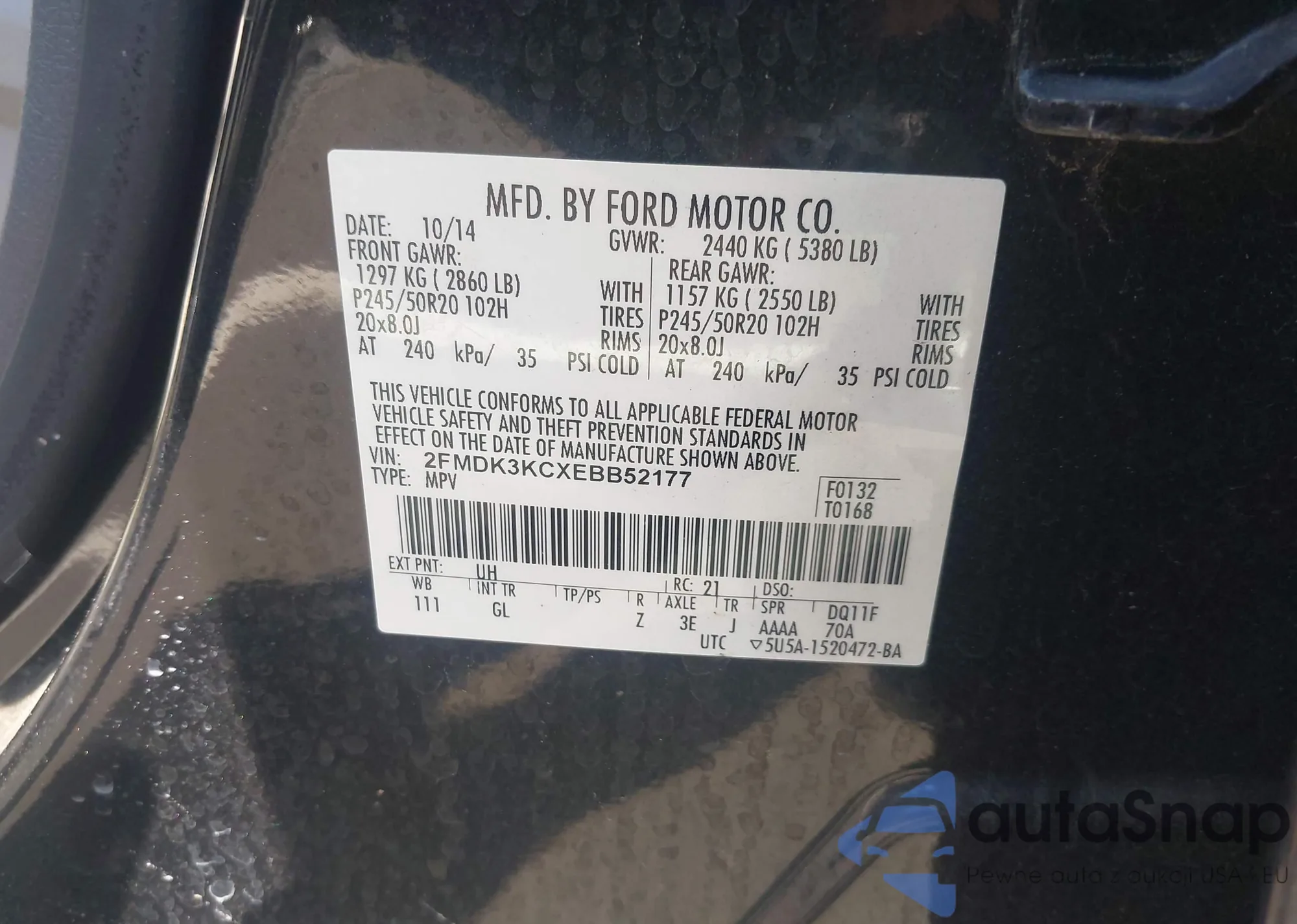 • VIN 2FMDK3KCXEBB52177