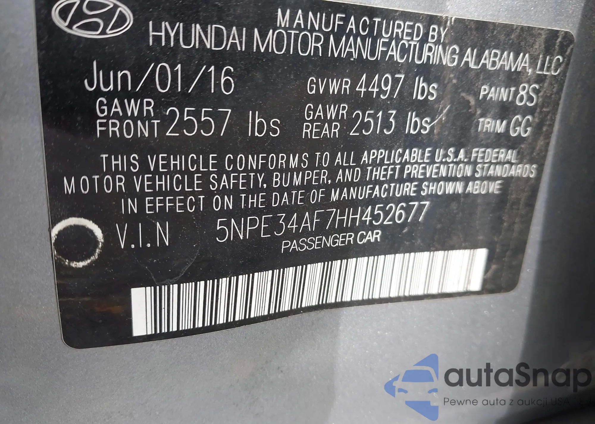 • VIN 5NPE34AF7HH452677