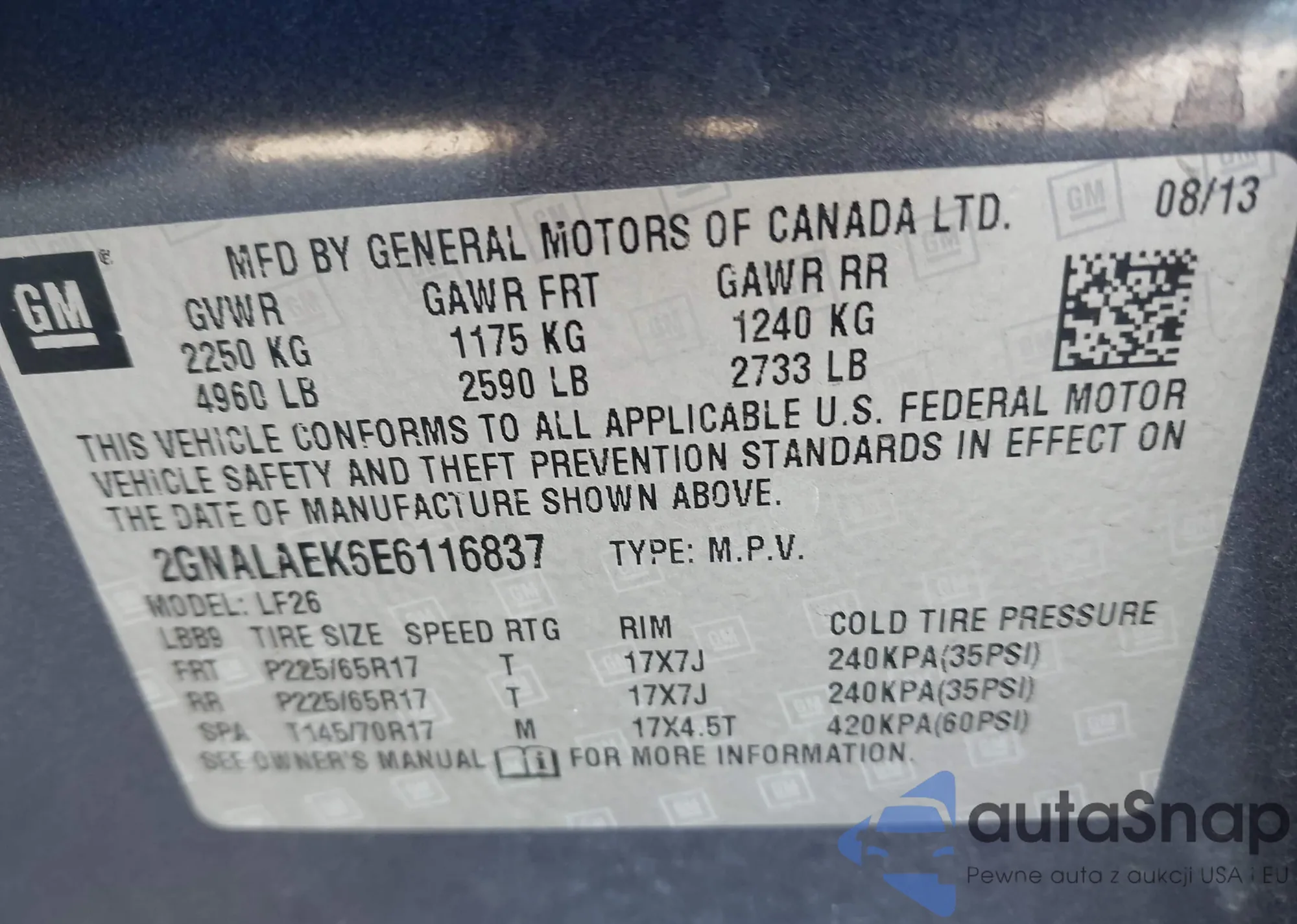 LOT: 43581747 VIN: 2GNAXJEV9J6120504