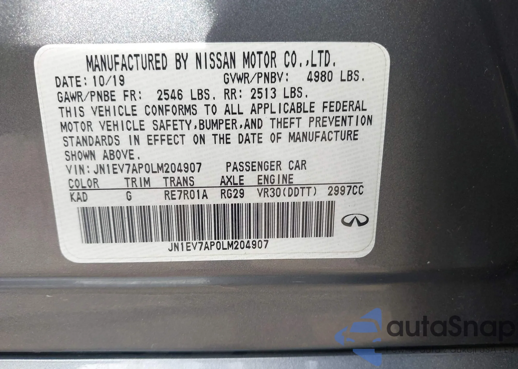 LOT: 43299124 VIN: JN1EV7AP0LM204907
