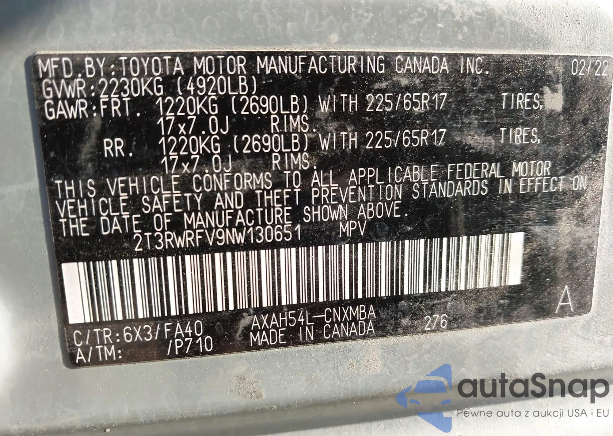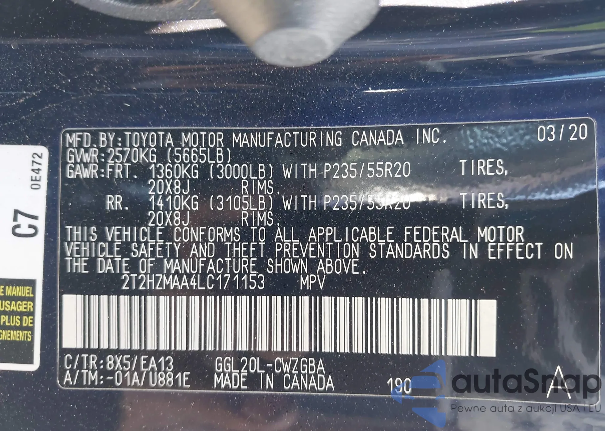 LOT: 43306306 VIN: 2T2HZMAA4LC171153