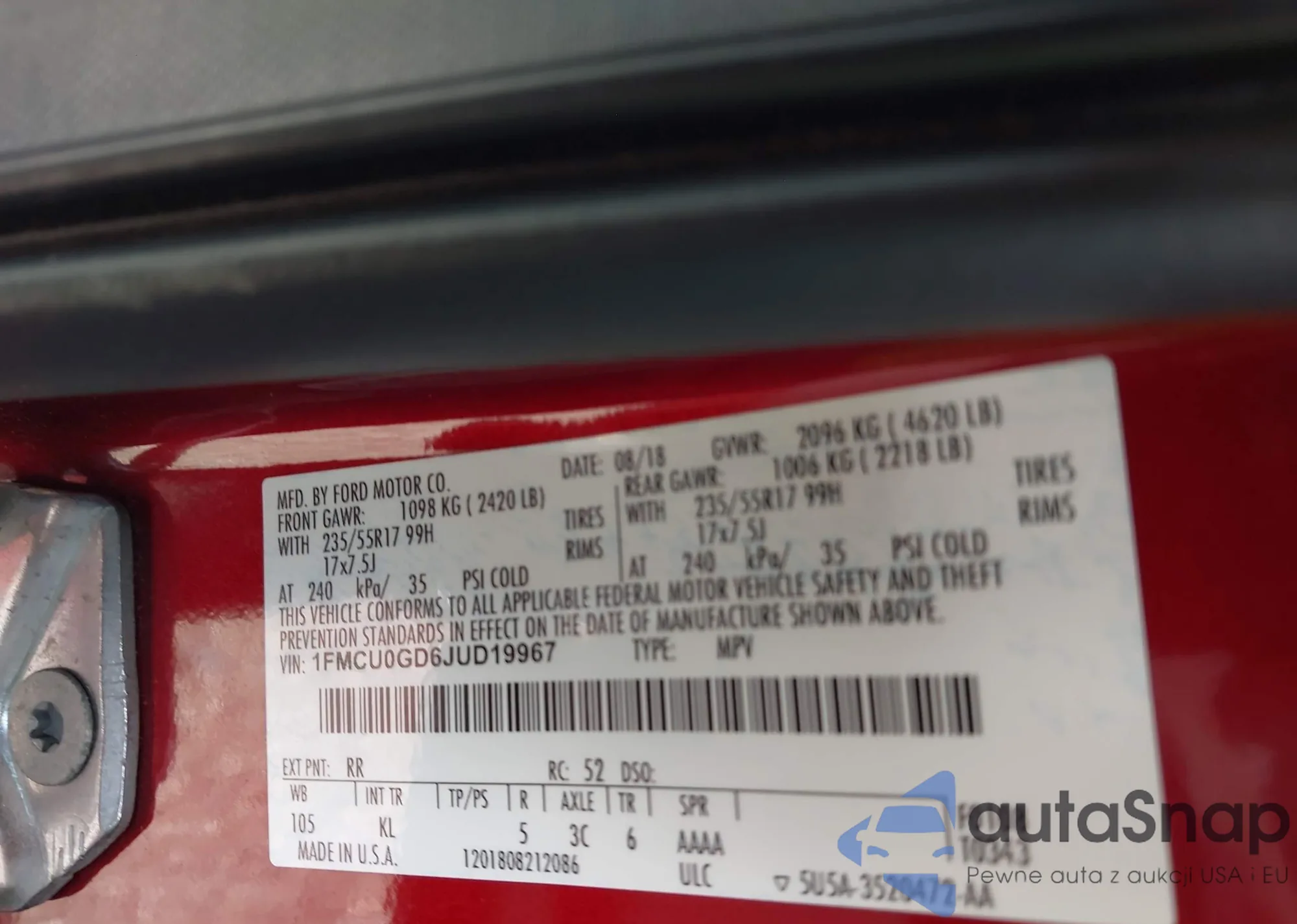 LOT: 43306521 VIN: 1FMCU0GD6JUD19967