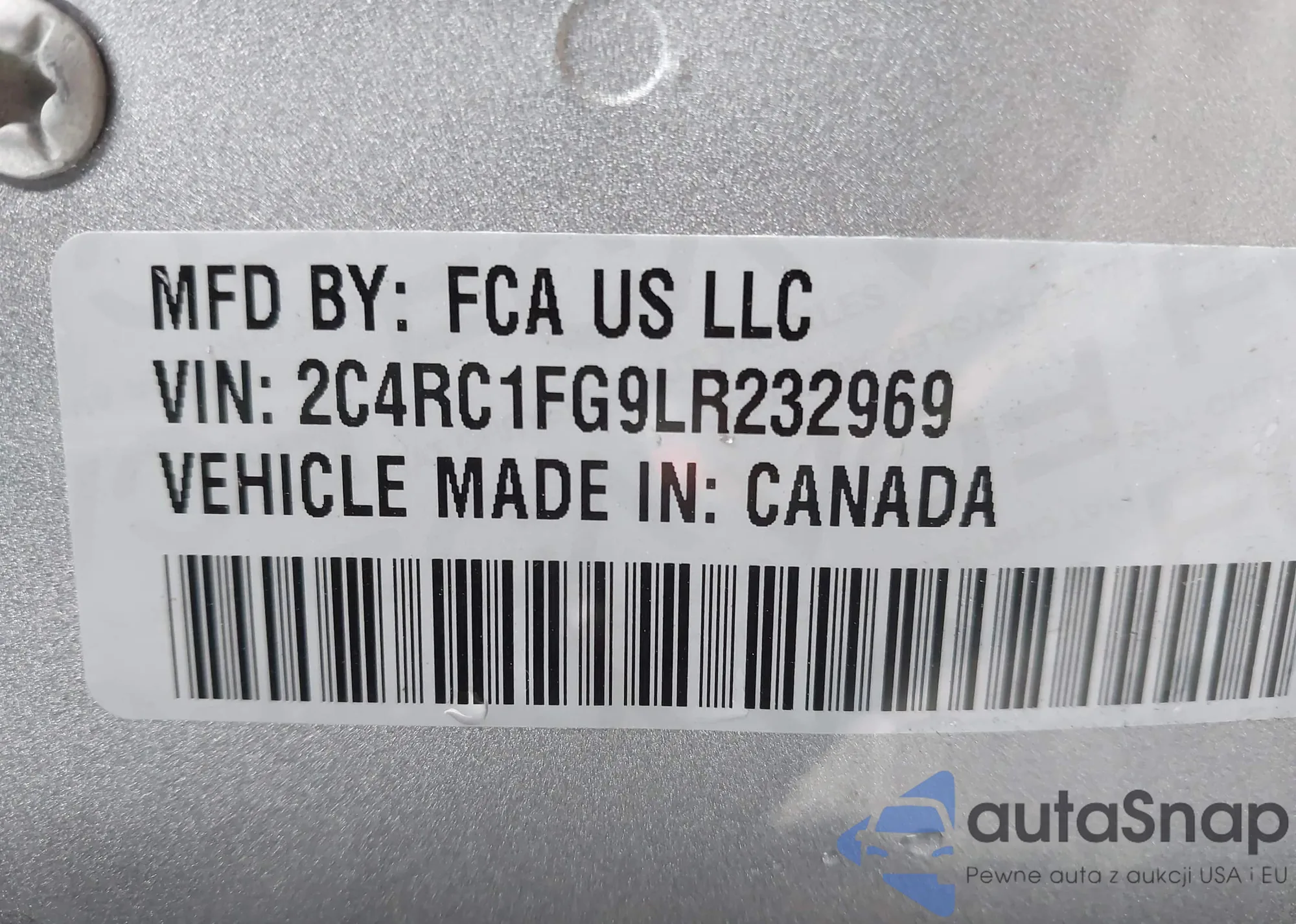 • VIN 2C4RC1FG9LR232969