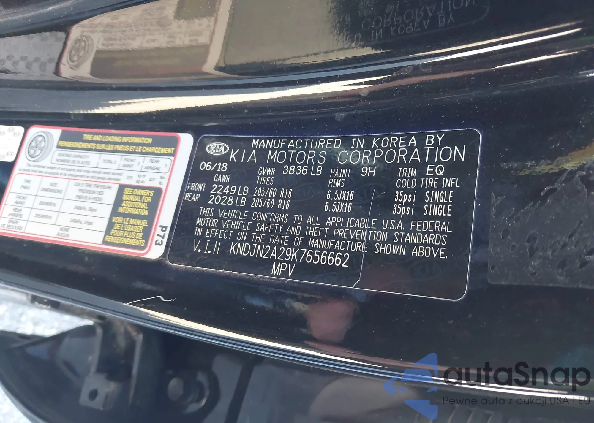 LOT: 43562554 VIN: KNDJN2A29K7656662