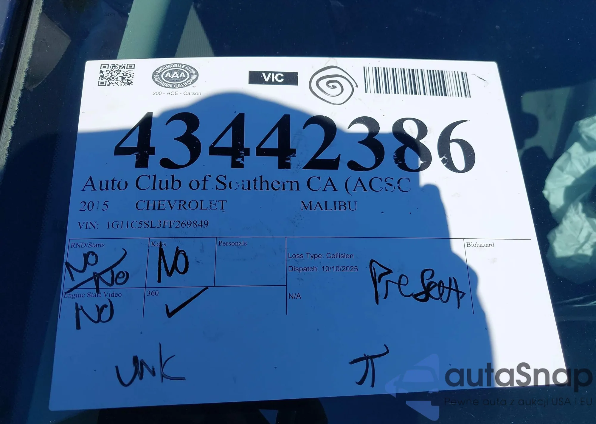 LOT: 43487714 VIN: 1HGCP2F86AA135899