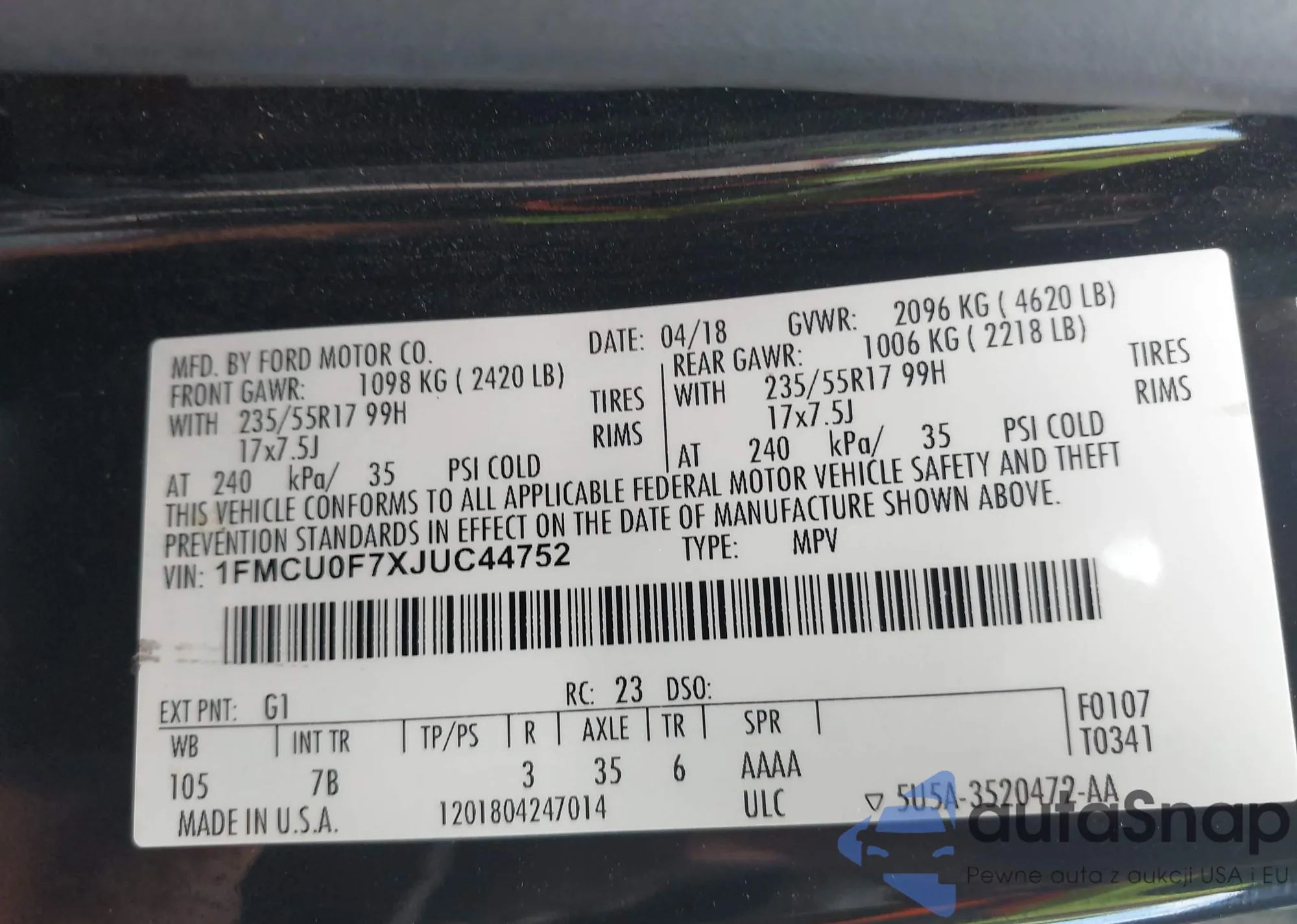 • VIN 1G6AX5SS9J0184337