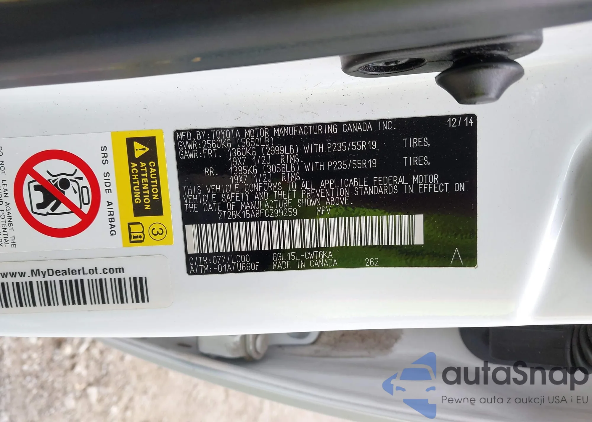 LOT: 43562971 VIN: 2T2BK1BA8FC299259