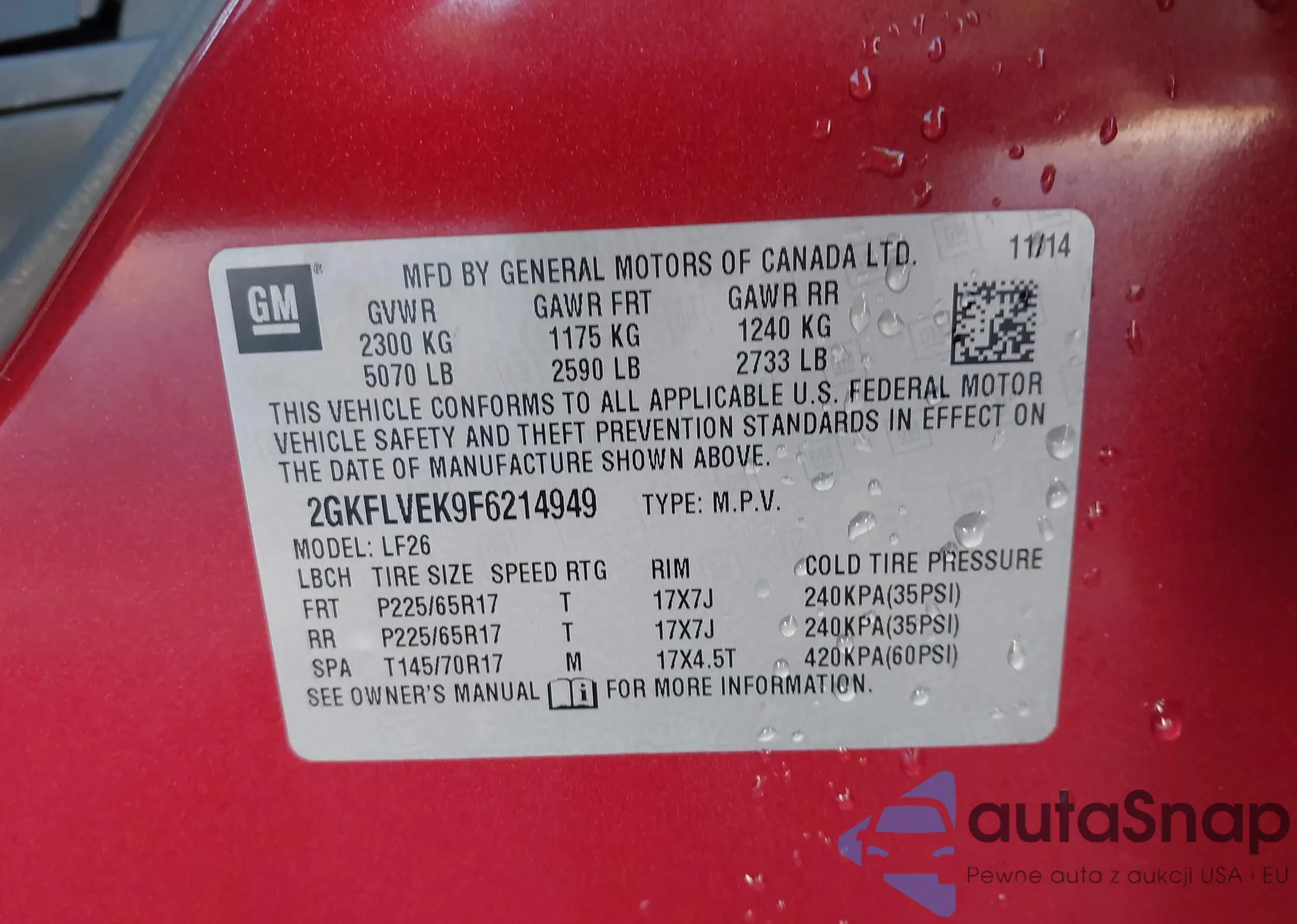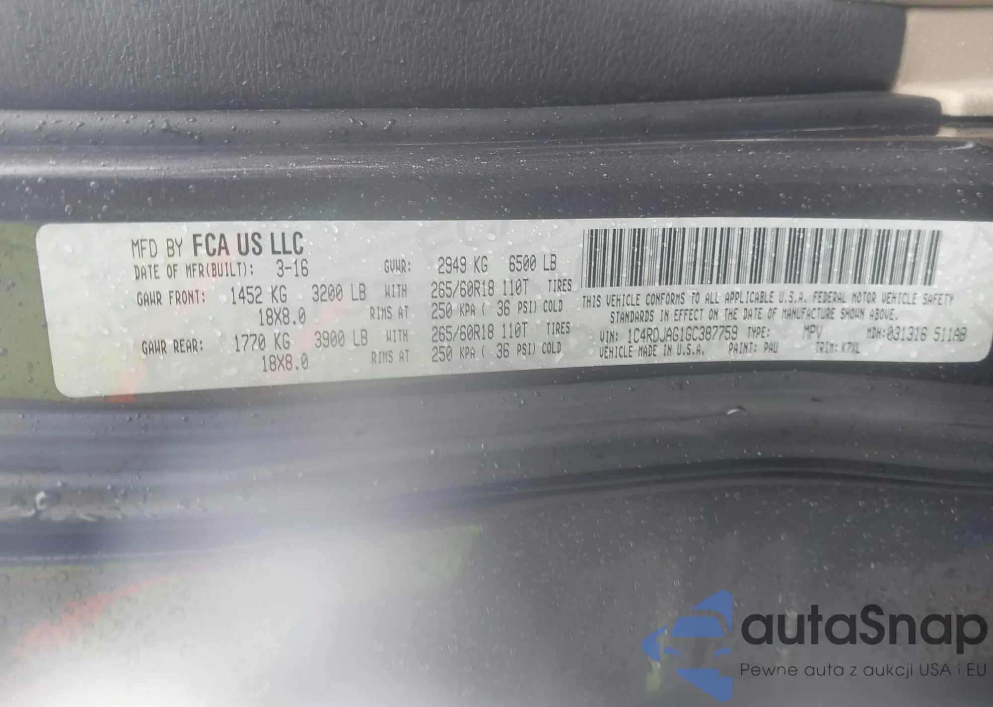 LOT: 43523858 VIN: KNAFK4A69G5537796