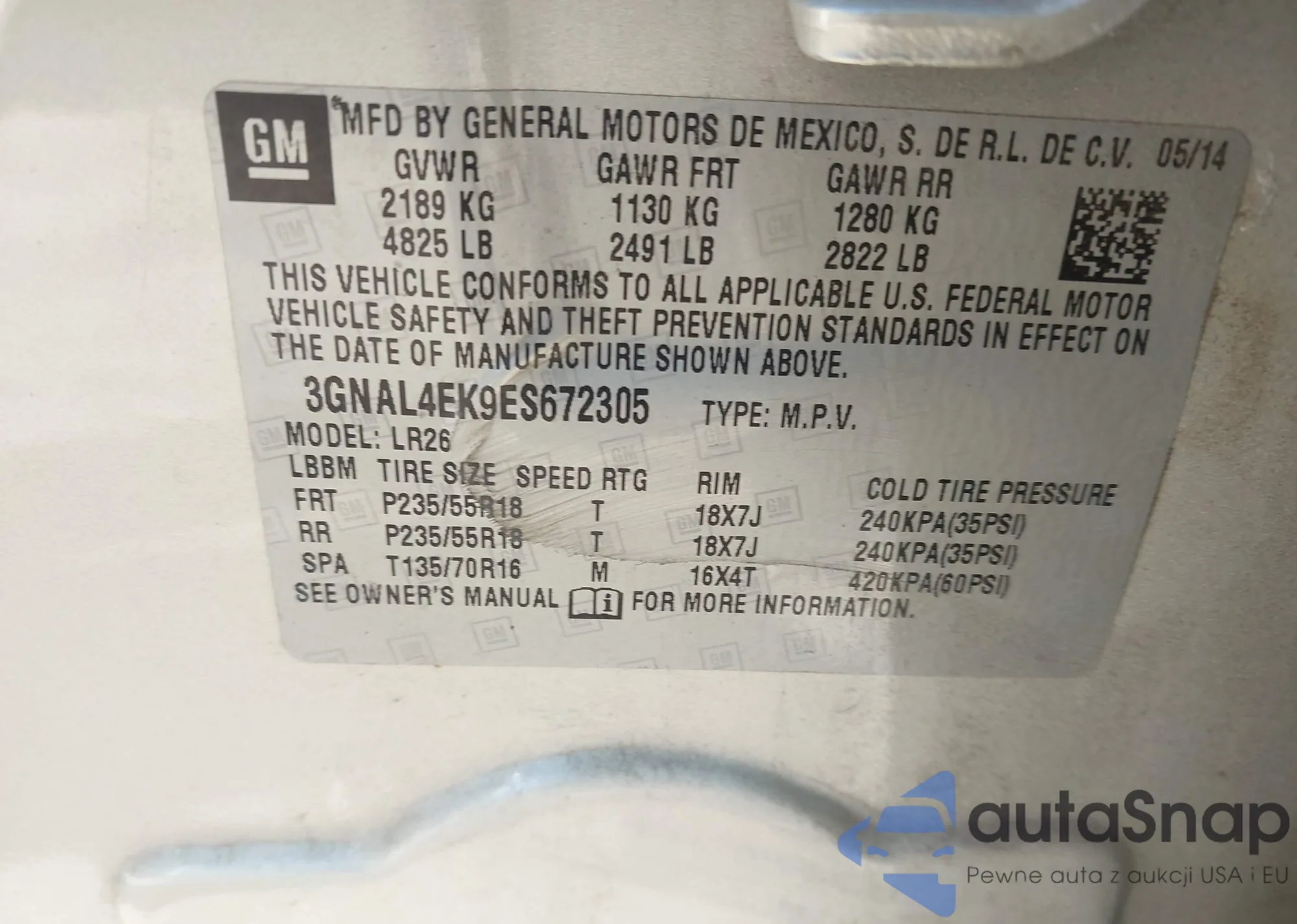 LOT: 43552553 VIN: 1G1PA5SH7E7476880