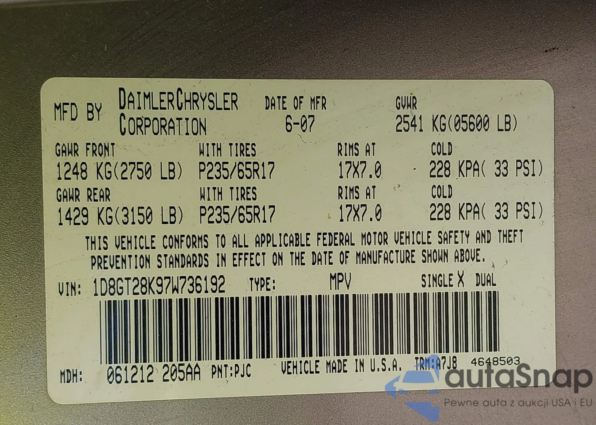 • VIN 1D8GT28K97W736192