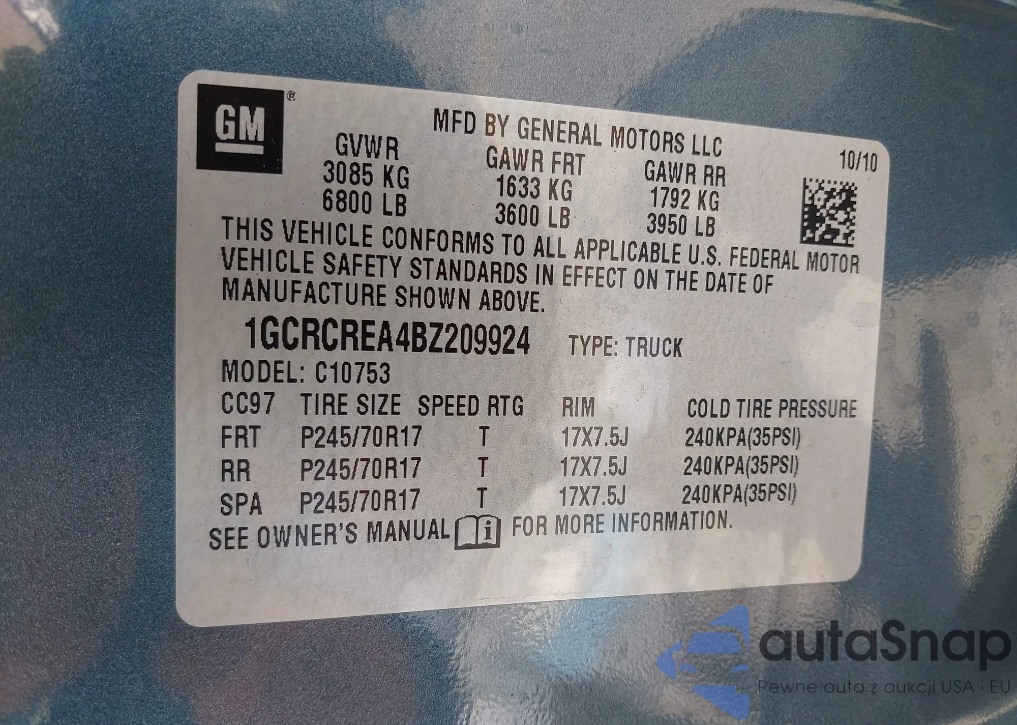 LOT: 43295137 VIN: 1GCRCREA4BZ209924