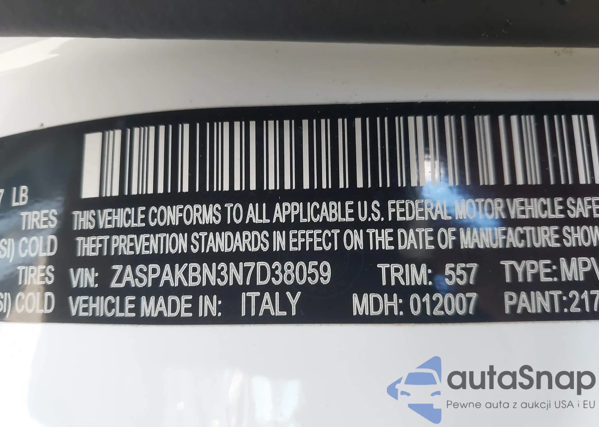 LOT: 43534600 VIN: ZASPAKBN3N7D38059
