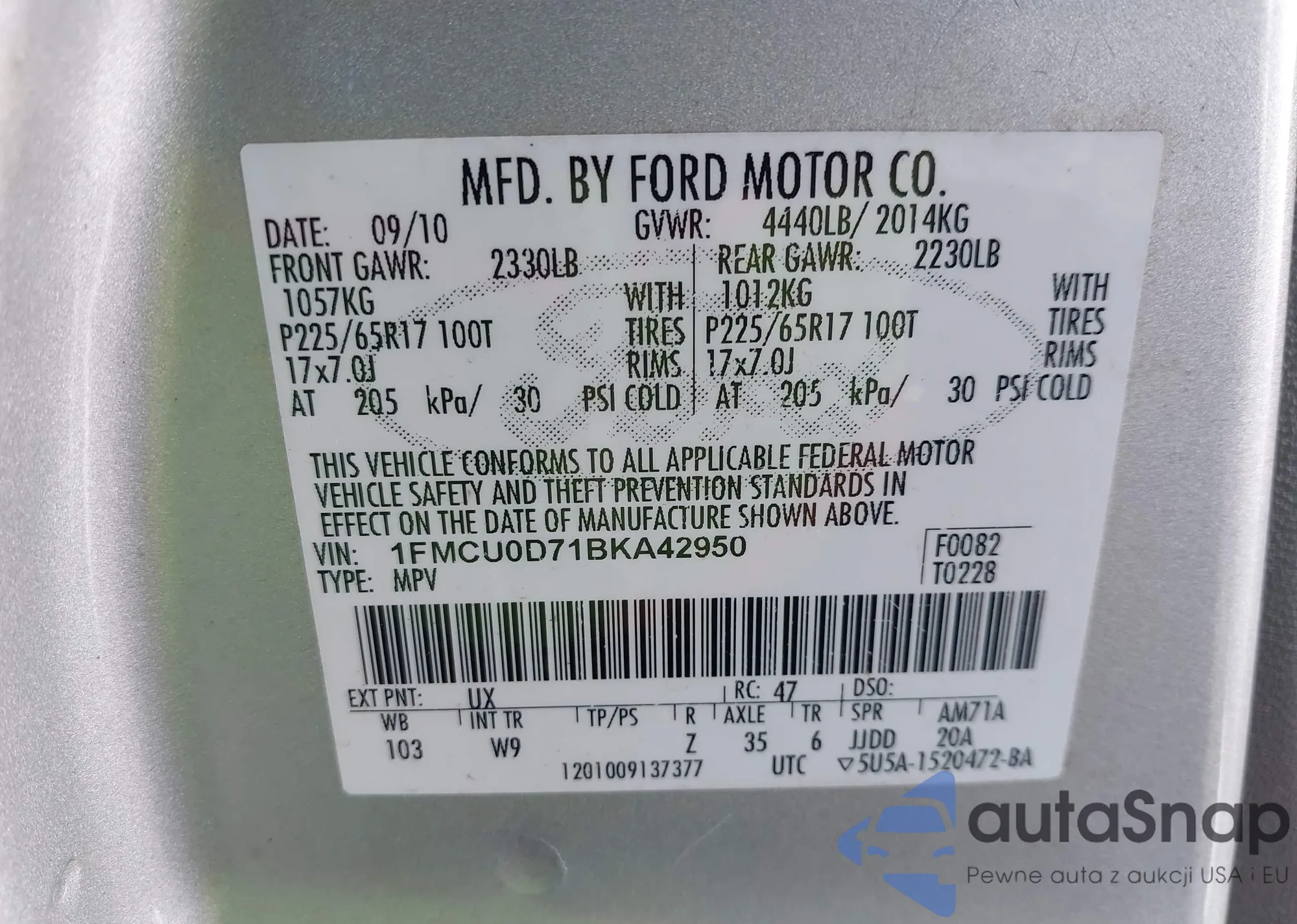 LOT: 43692727 VIN: 5KBCP3F83AB017760