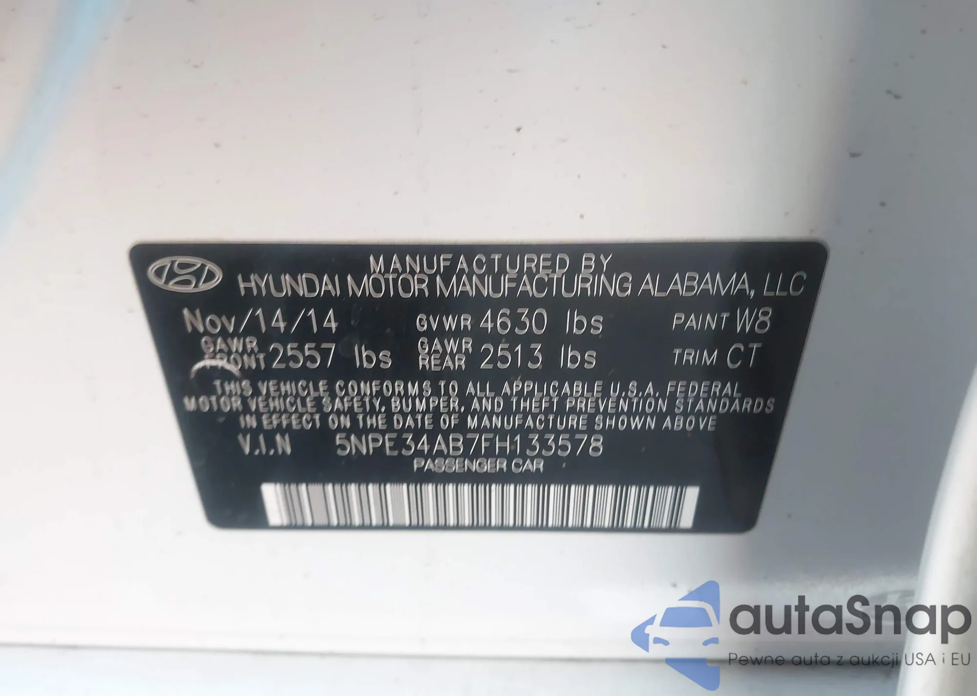 LOT: 43794933 VIN: 5NPE34AB7FH133578