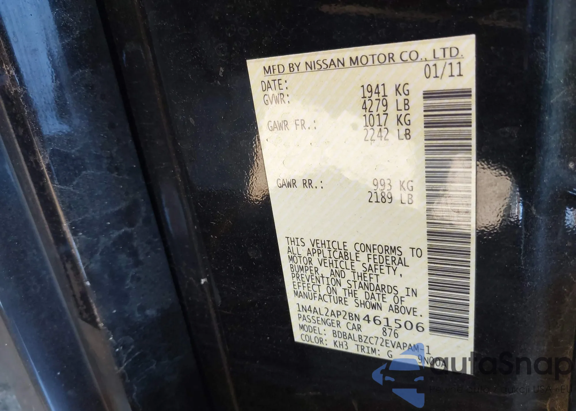 LOT: 43506718 VIN: 1N4AL2AP2BN461506