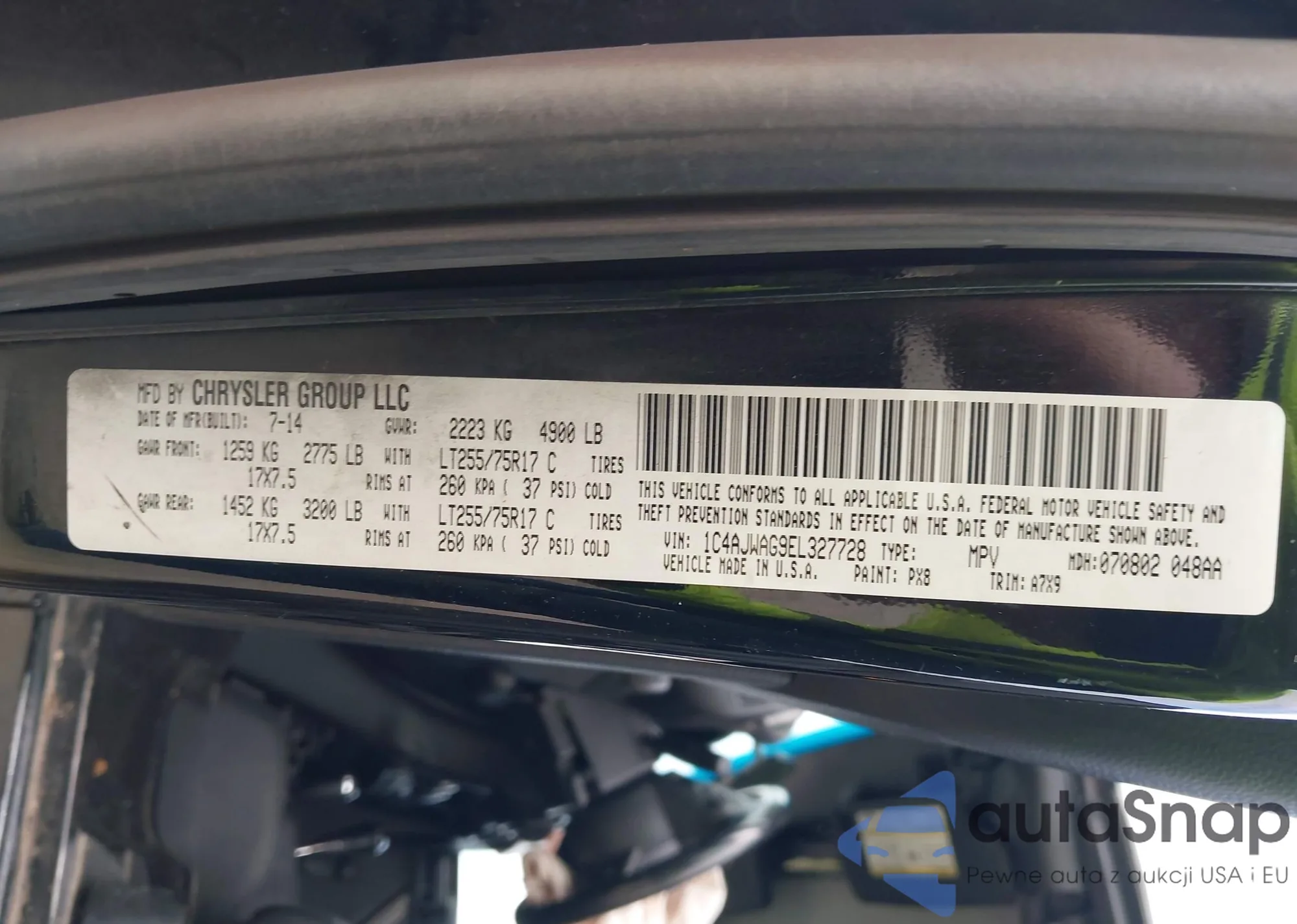 • VIN 1C4AJWAG9EL327728