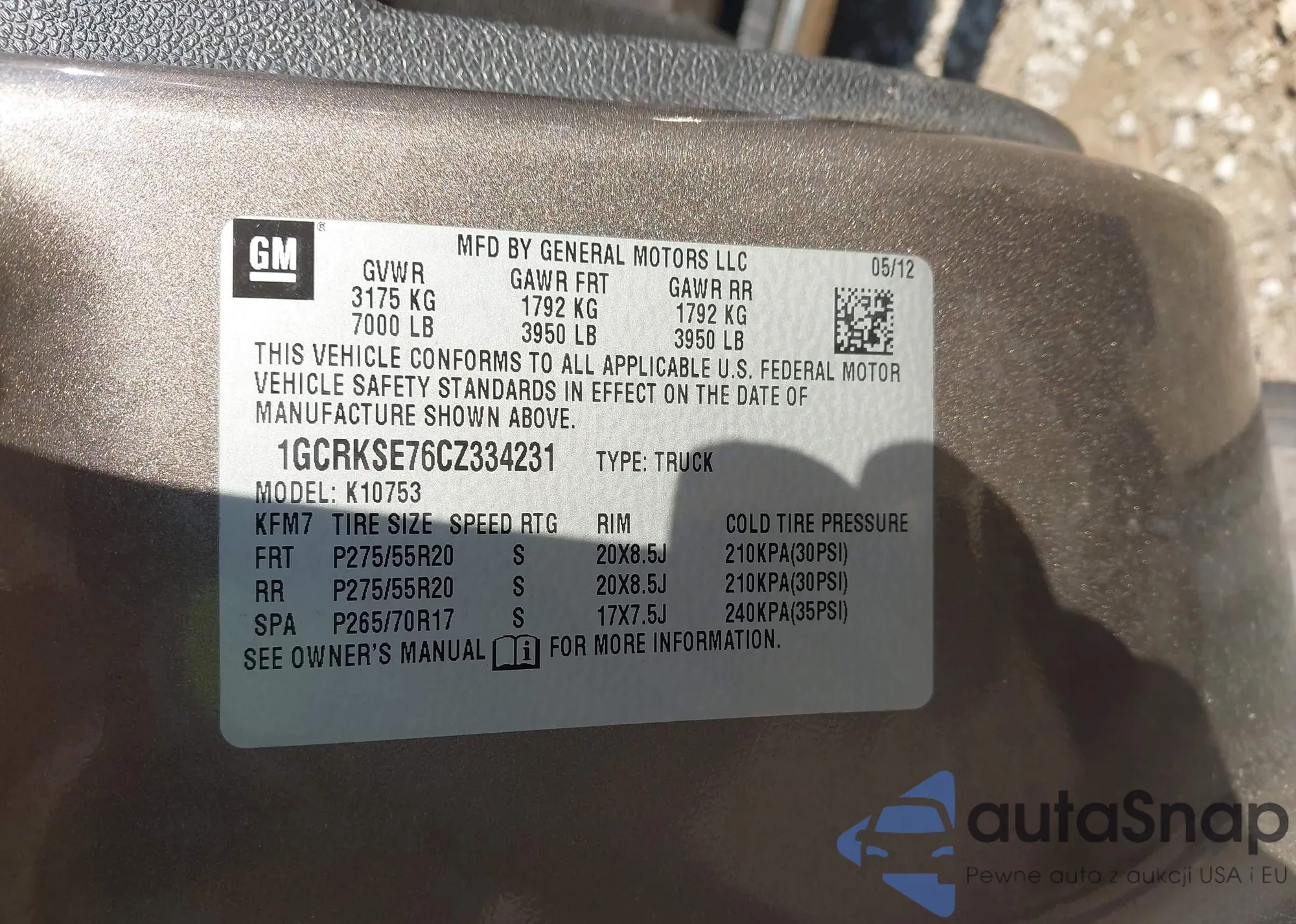 • VIN 1GCRKSE76CZ334231