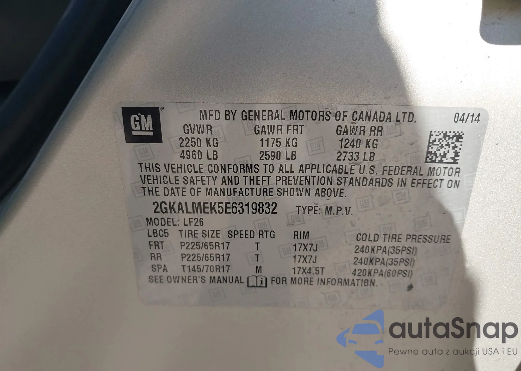 • VIN 2GKALMEK5E6319832