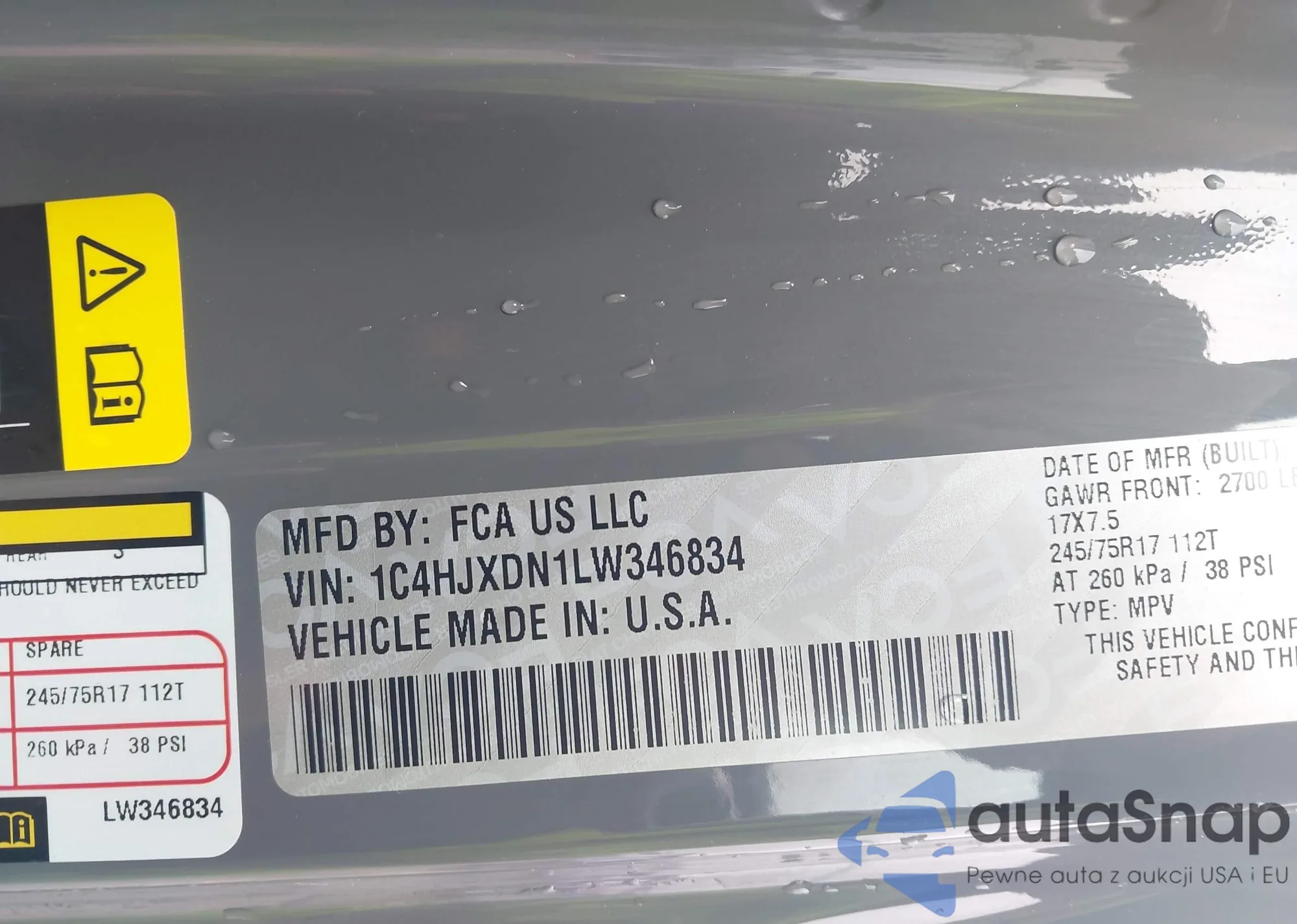 • VIN 1C4HJXDN1LW346834