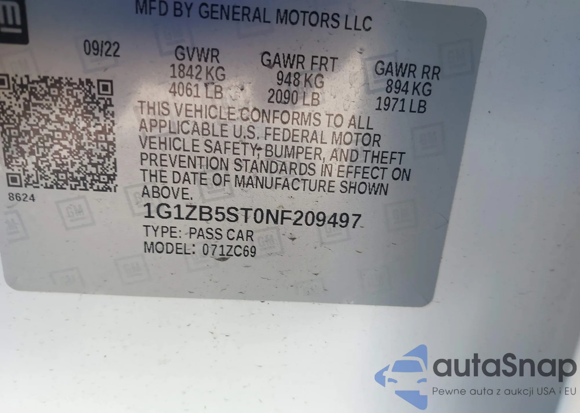 • VIN 1G1ZB5ST0NF209497