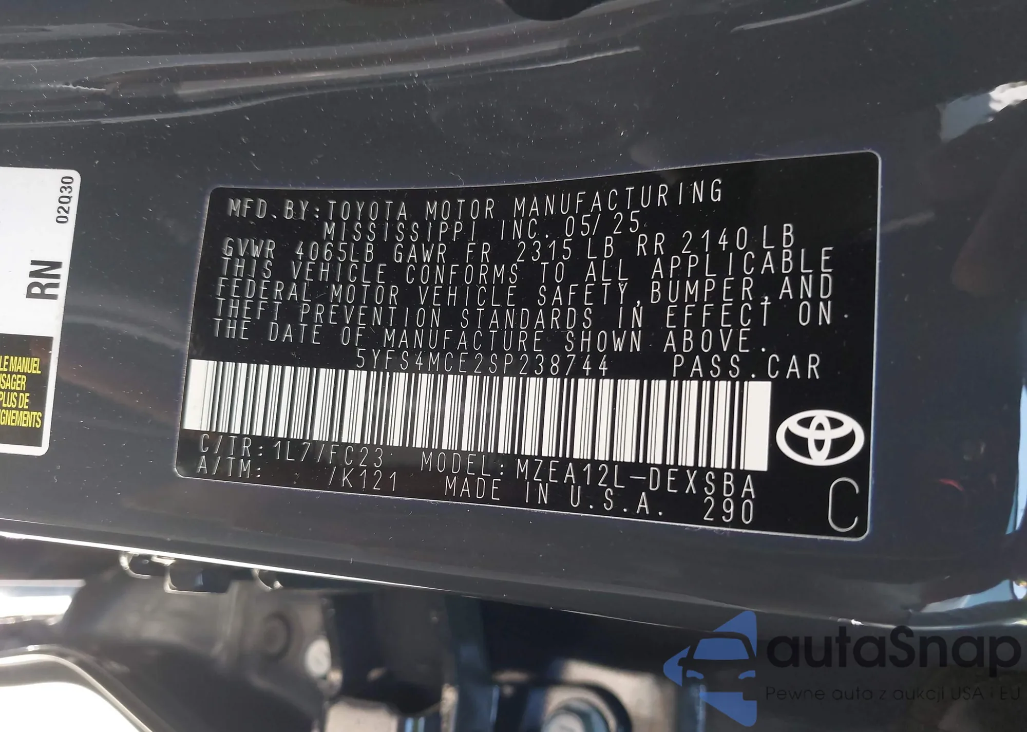 LOT: 43331304 VIN: 5YFS4MCE2SP238744