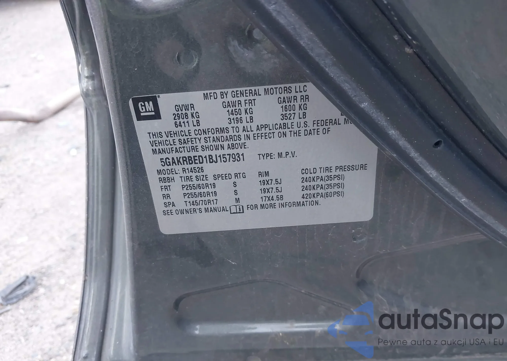 LOT: 43373184 VIN: 5GAKRBED1BJ157931