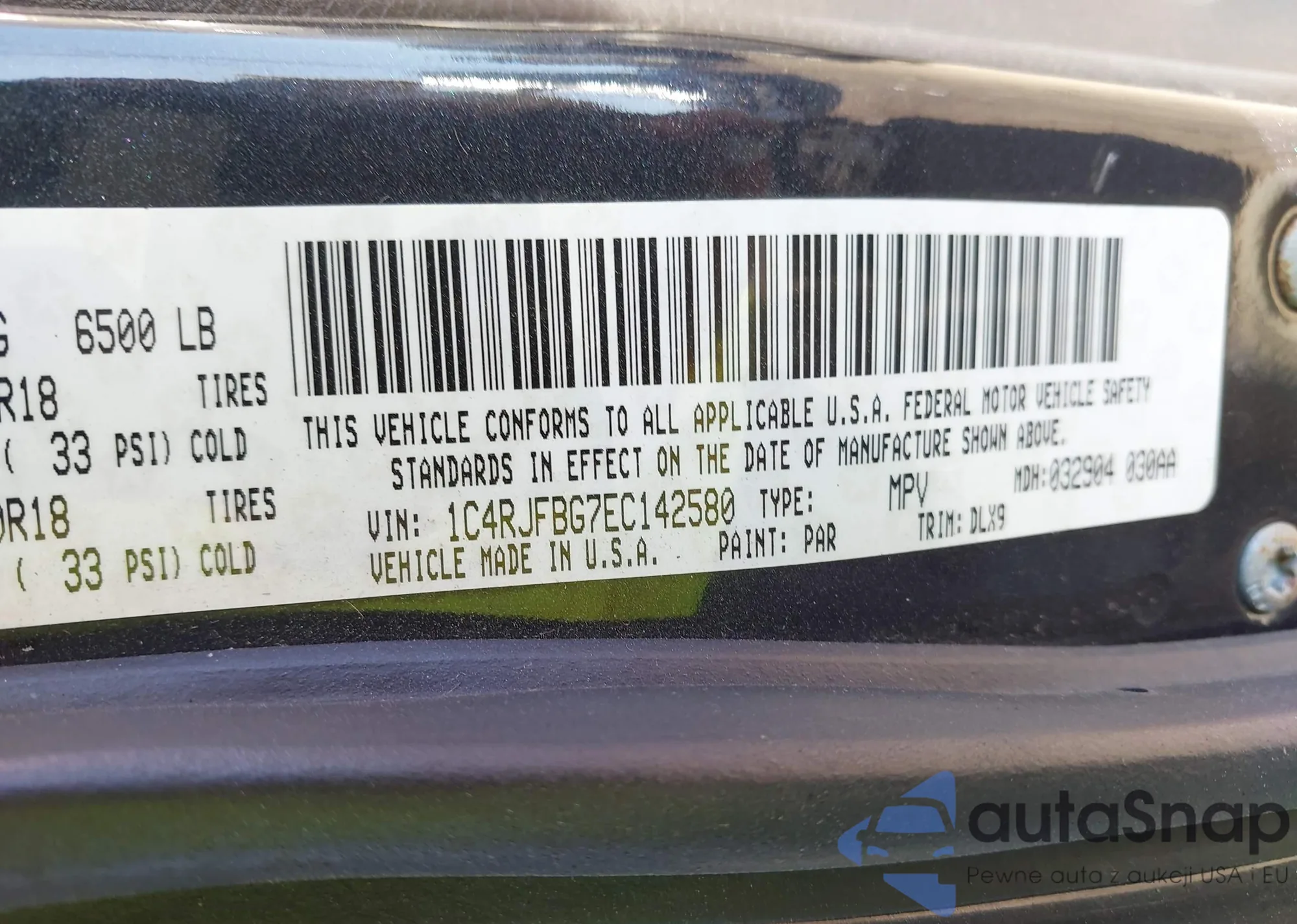 • VIN 1C4RJFBG7EC142580