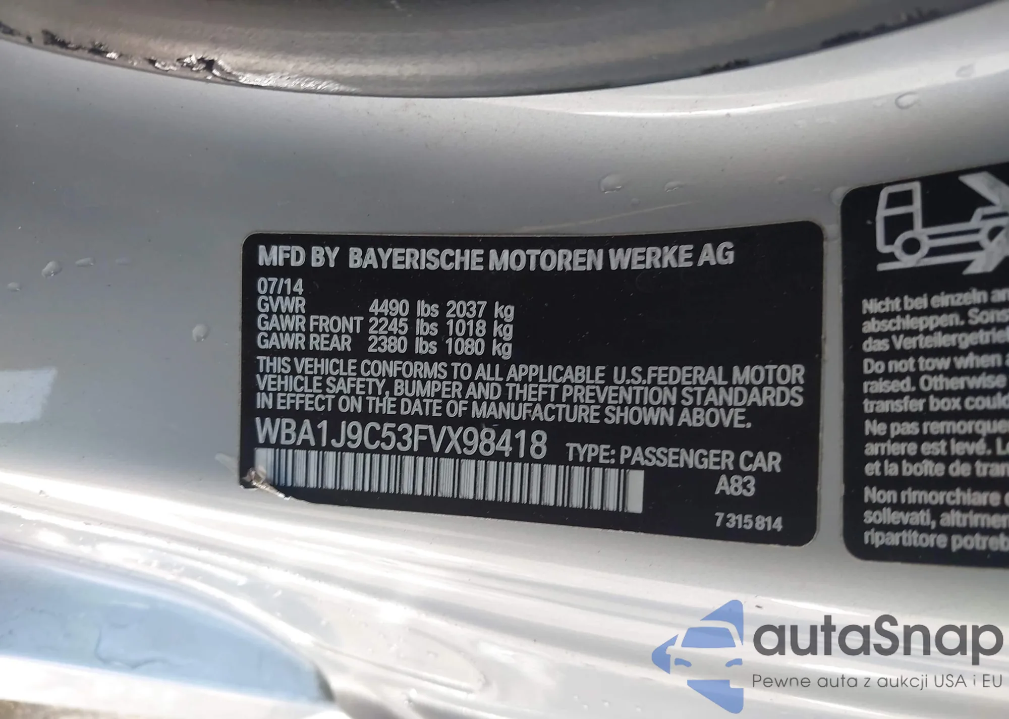 • VIN WBA1J9C53FVX98418