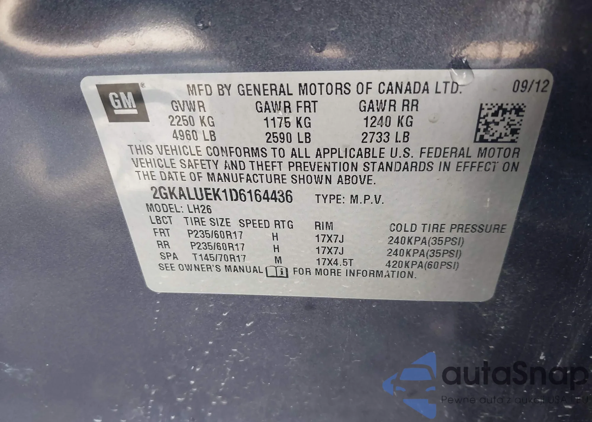 LOT: 43675599 VIN: 2GKALUEK1D6164436