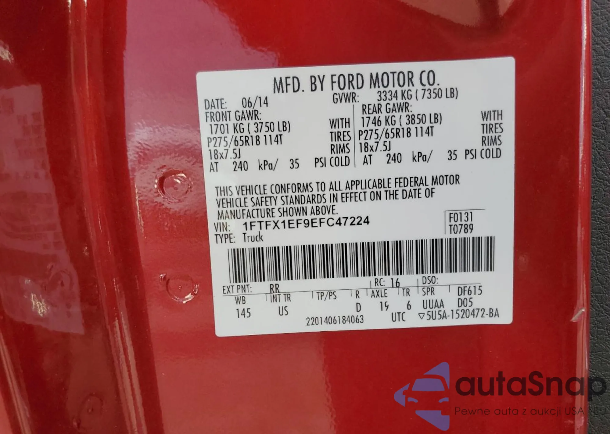 • VIN 1FTRF3BT5BED12514