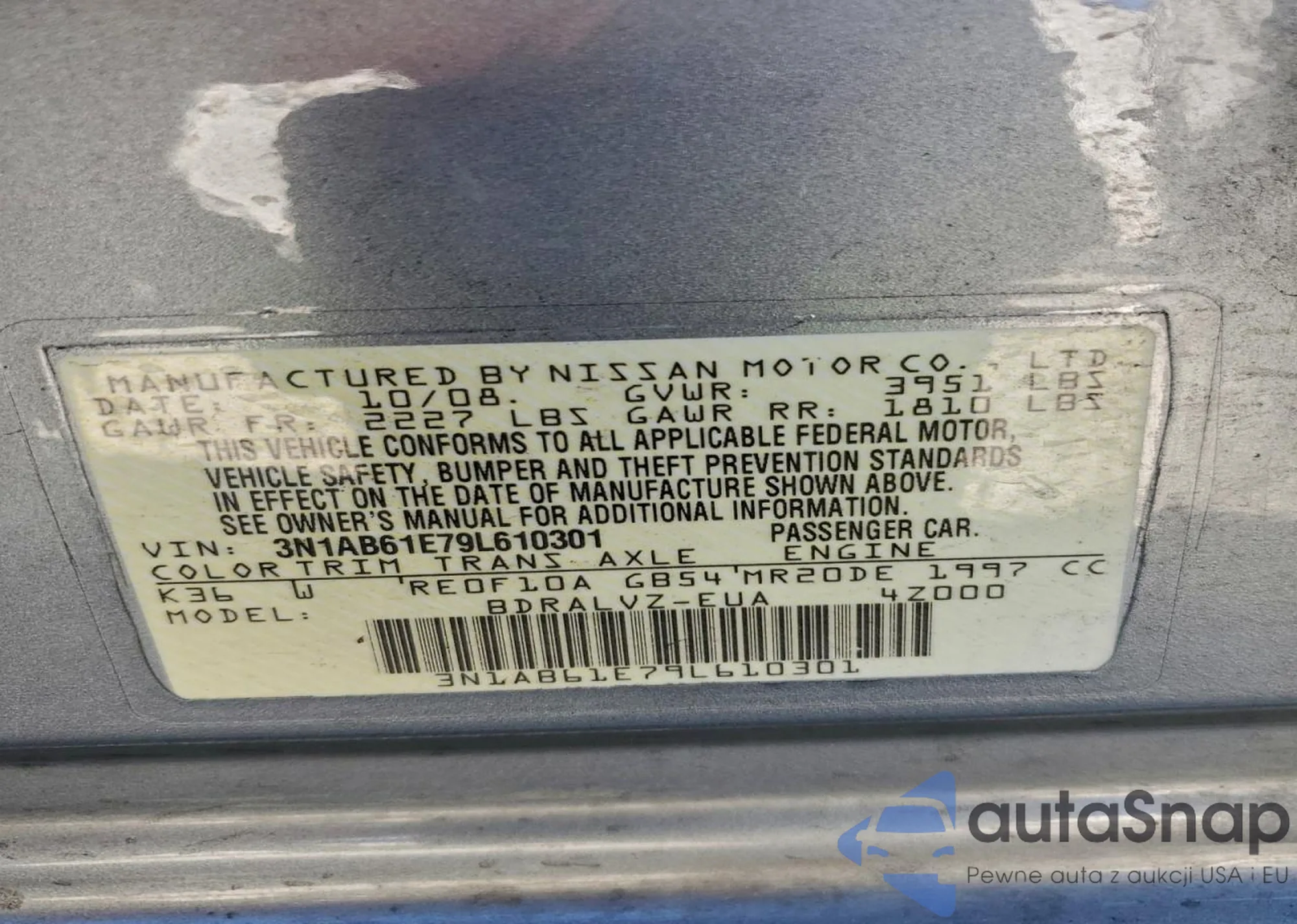 • VIN 3N1AB61E79L610301