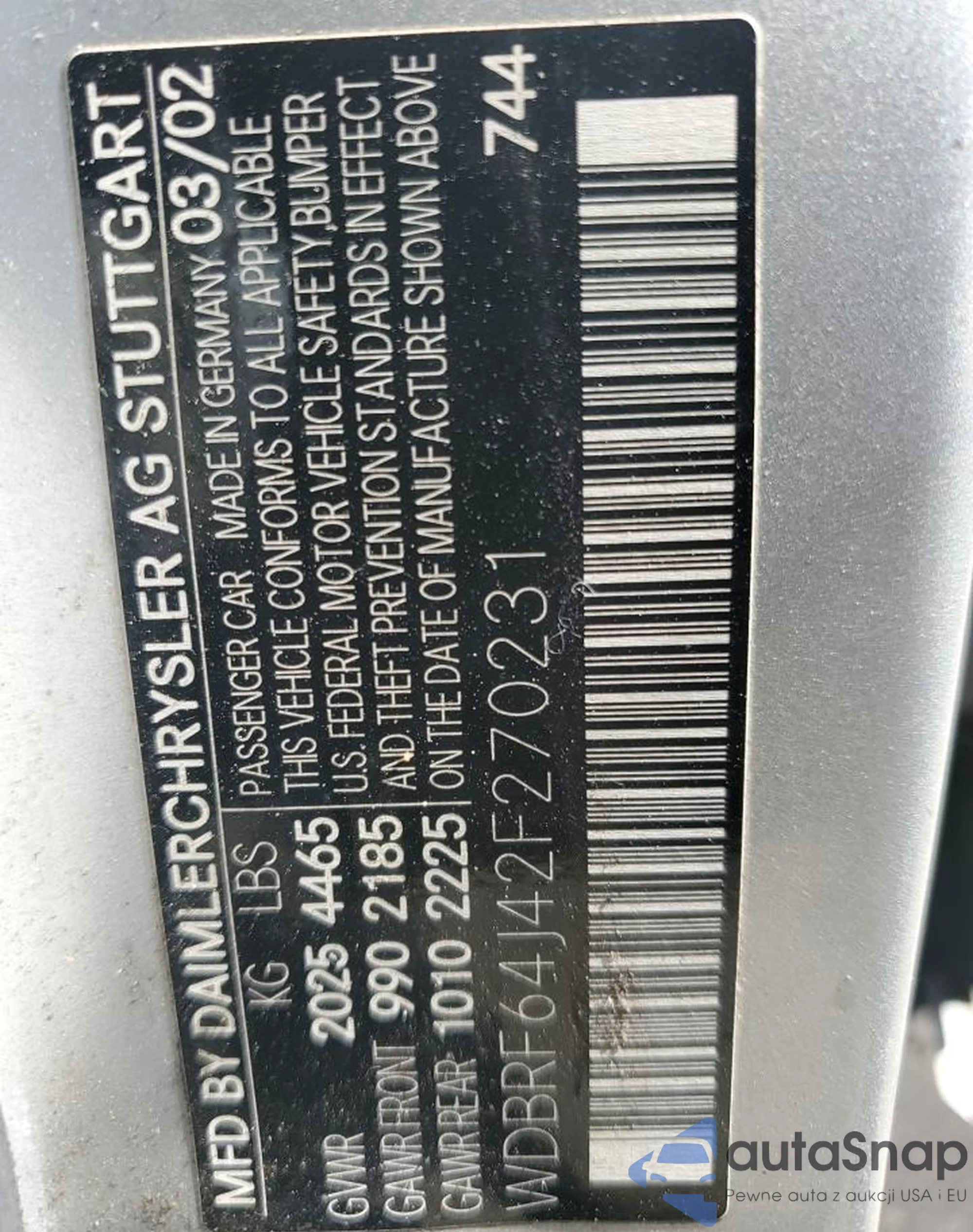 LOT: 82707555 VIN: WAUCJGFF0F1066059