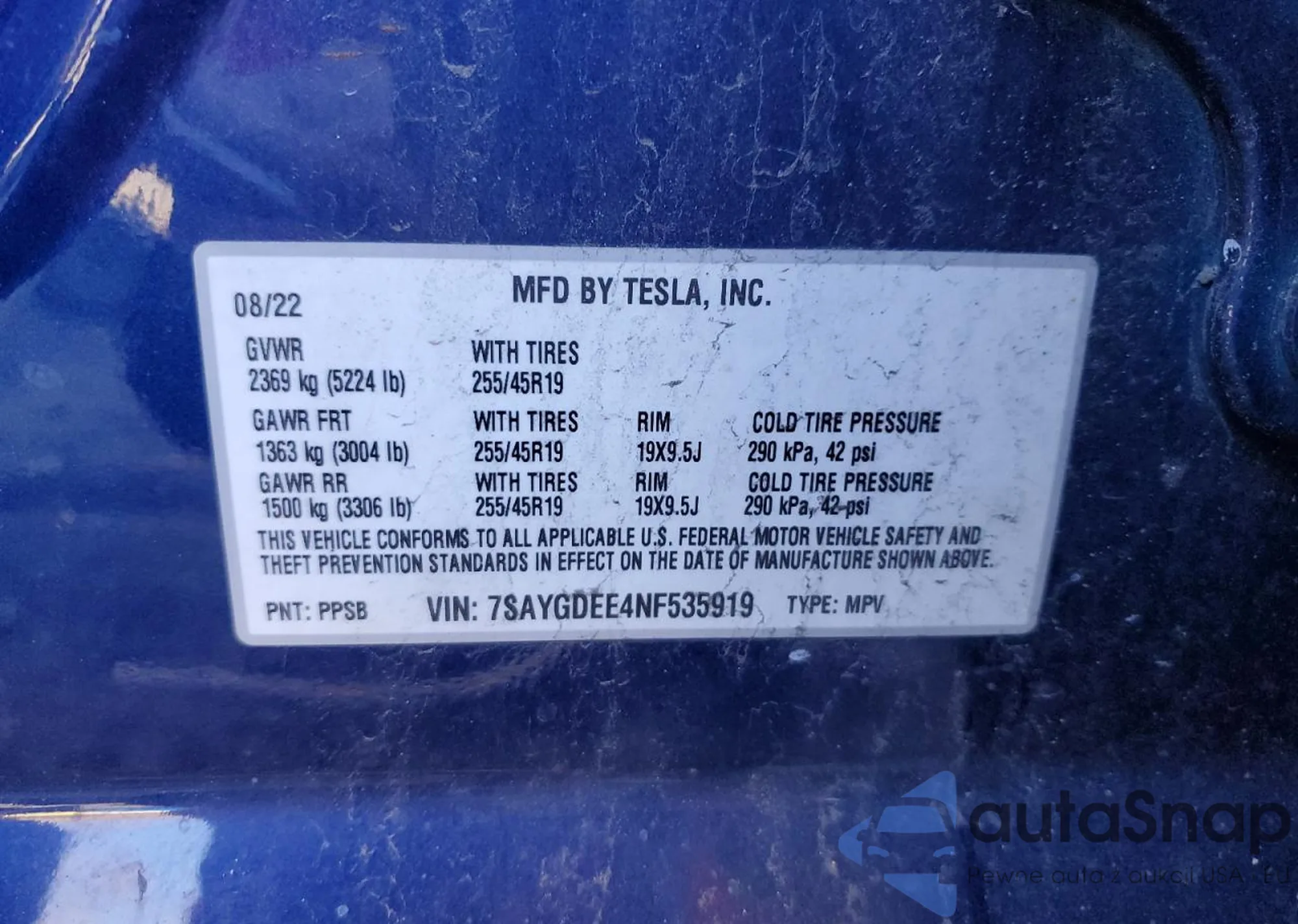 • VIN 7SAYGDEE4NF535919