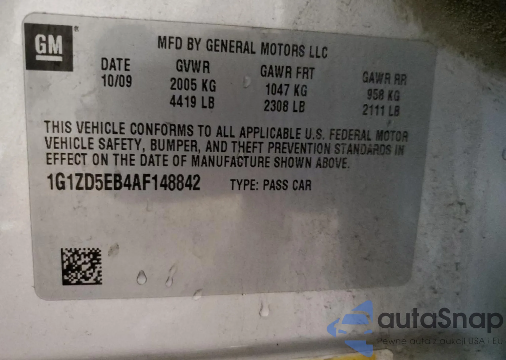 • VIN 1G1ZD5EB4AF148842