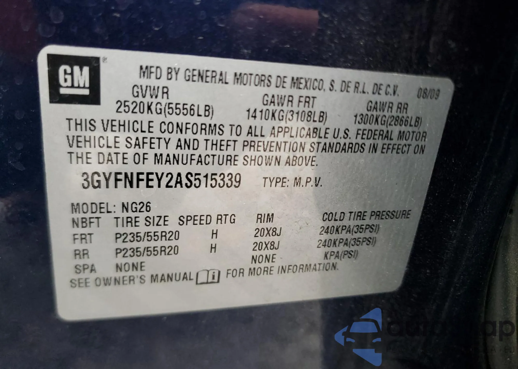• VIN 2GNAXMEV7N6109332