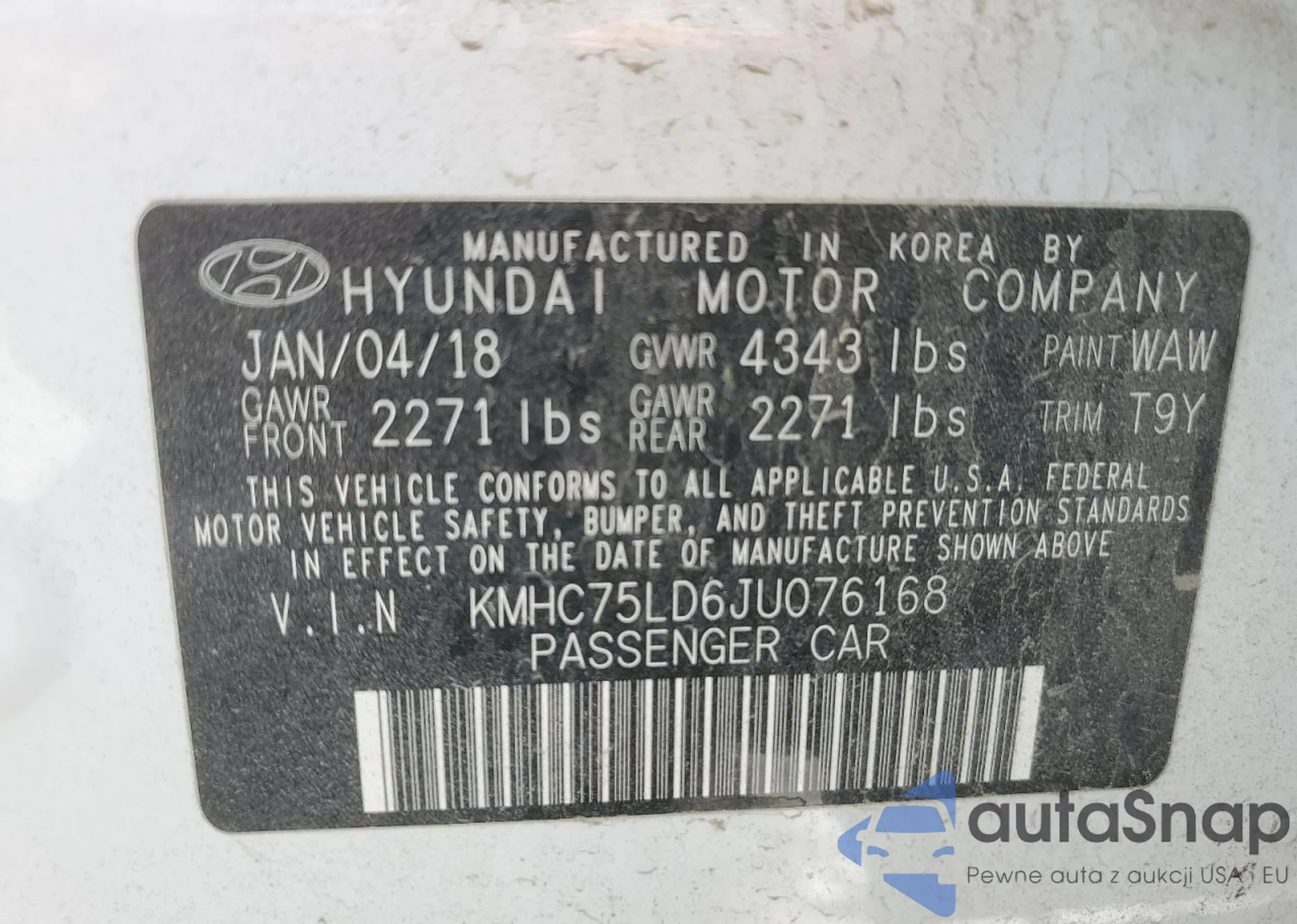 LOT: 86608955 VIN: KMHC75LD6JU076168