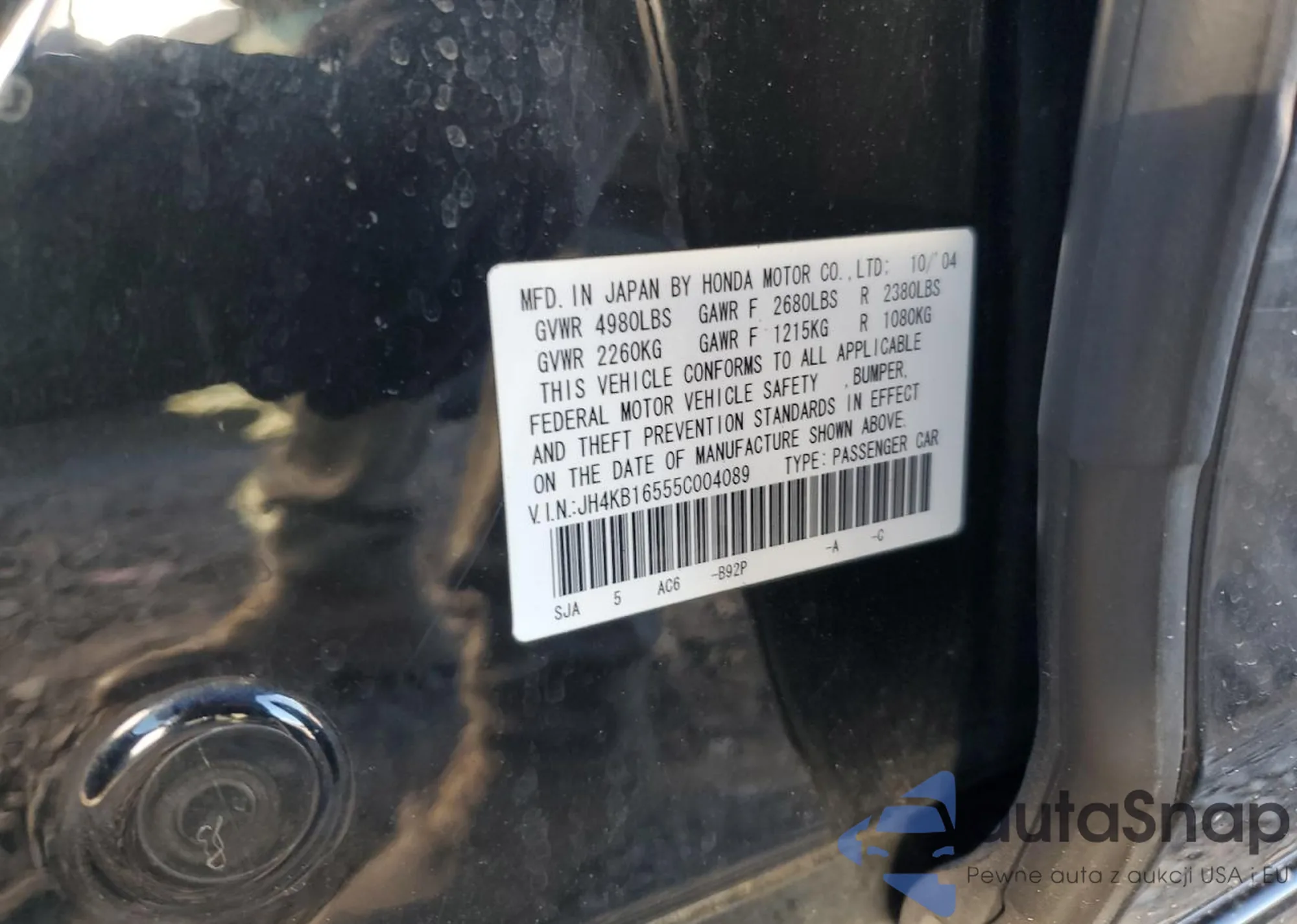 LOT: 89874315 VIN: JH4KB16555C004089