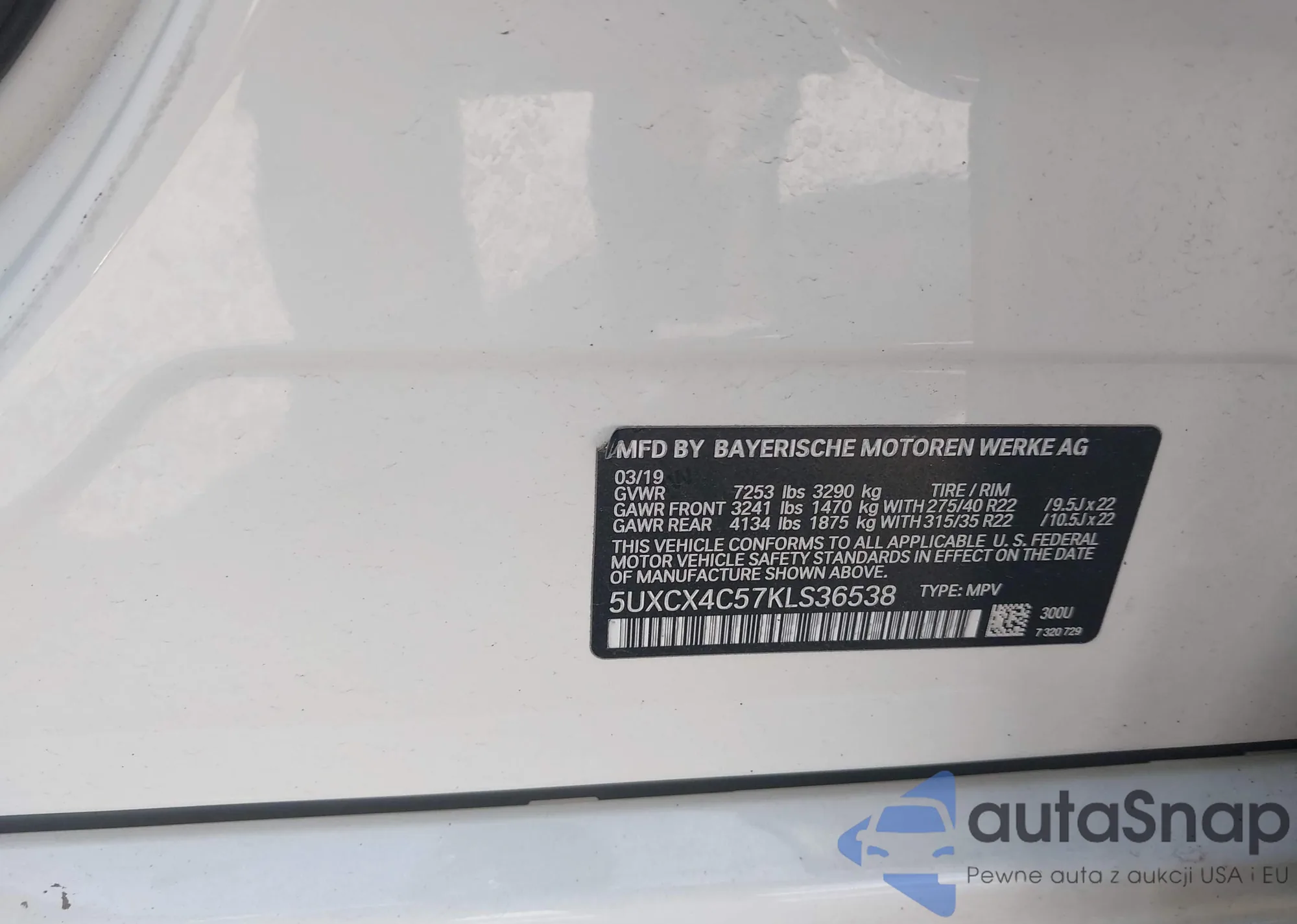 LOT: 42918436 VIN: 5UXCX4C57KLS36538