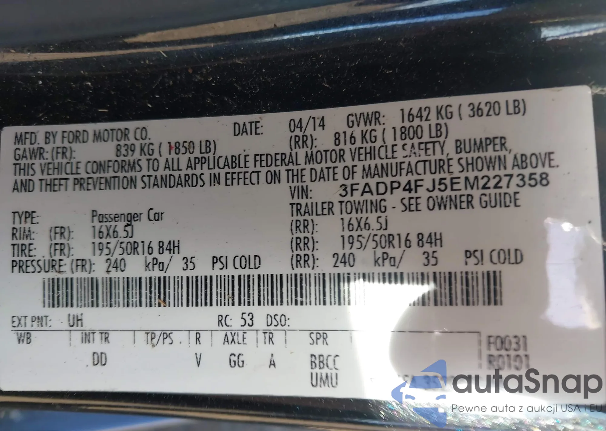 • VIN 3FADP4BJ4KM110453
