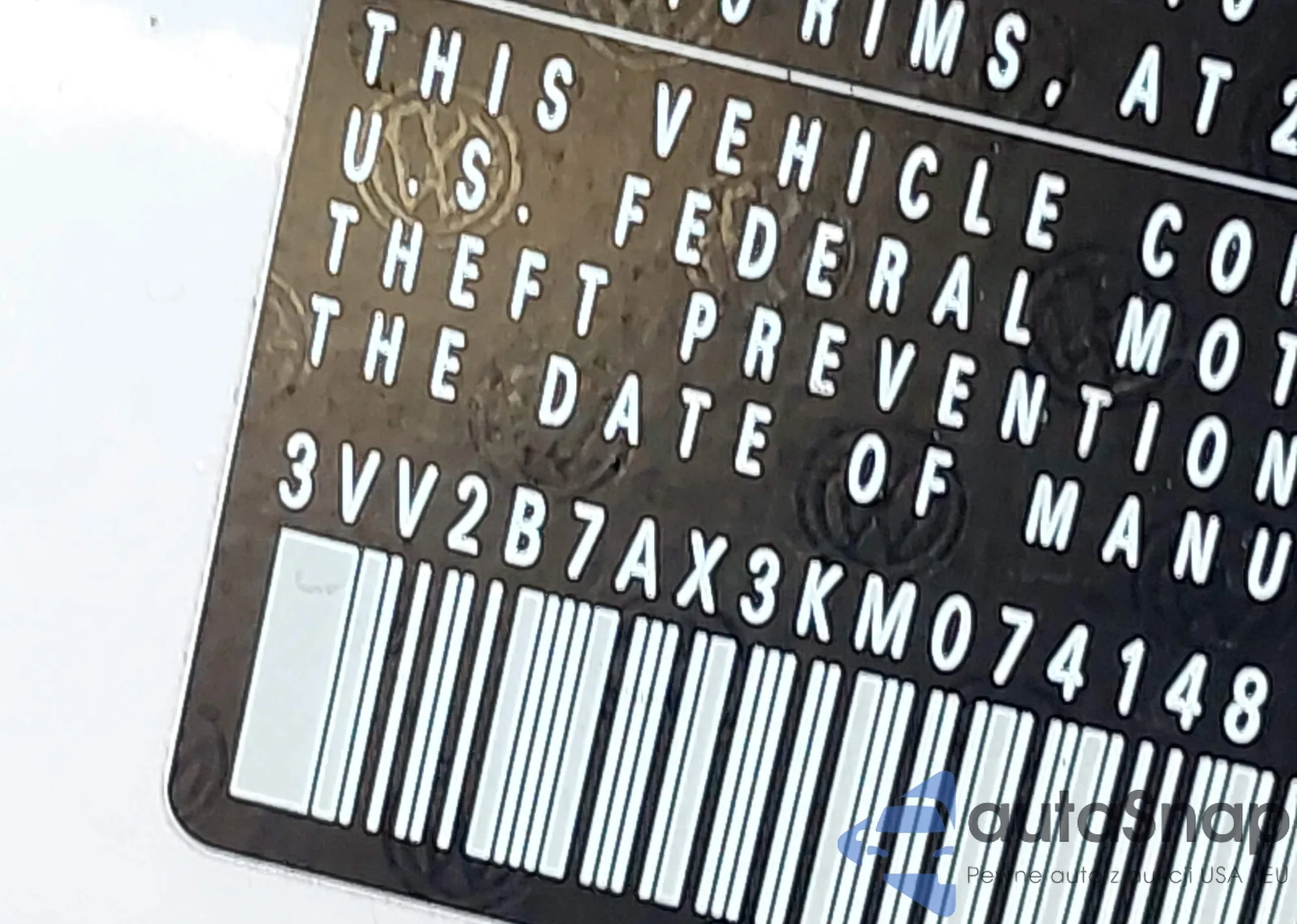 • VIN 3VV2B7AX3KM074148