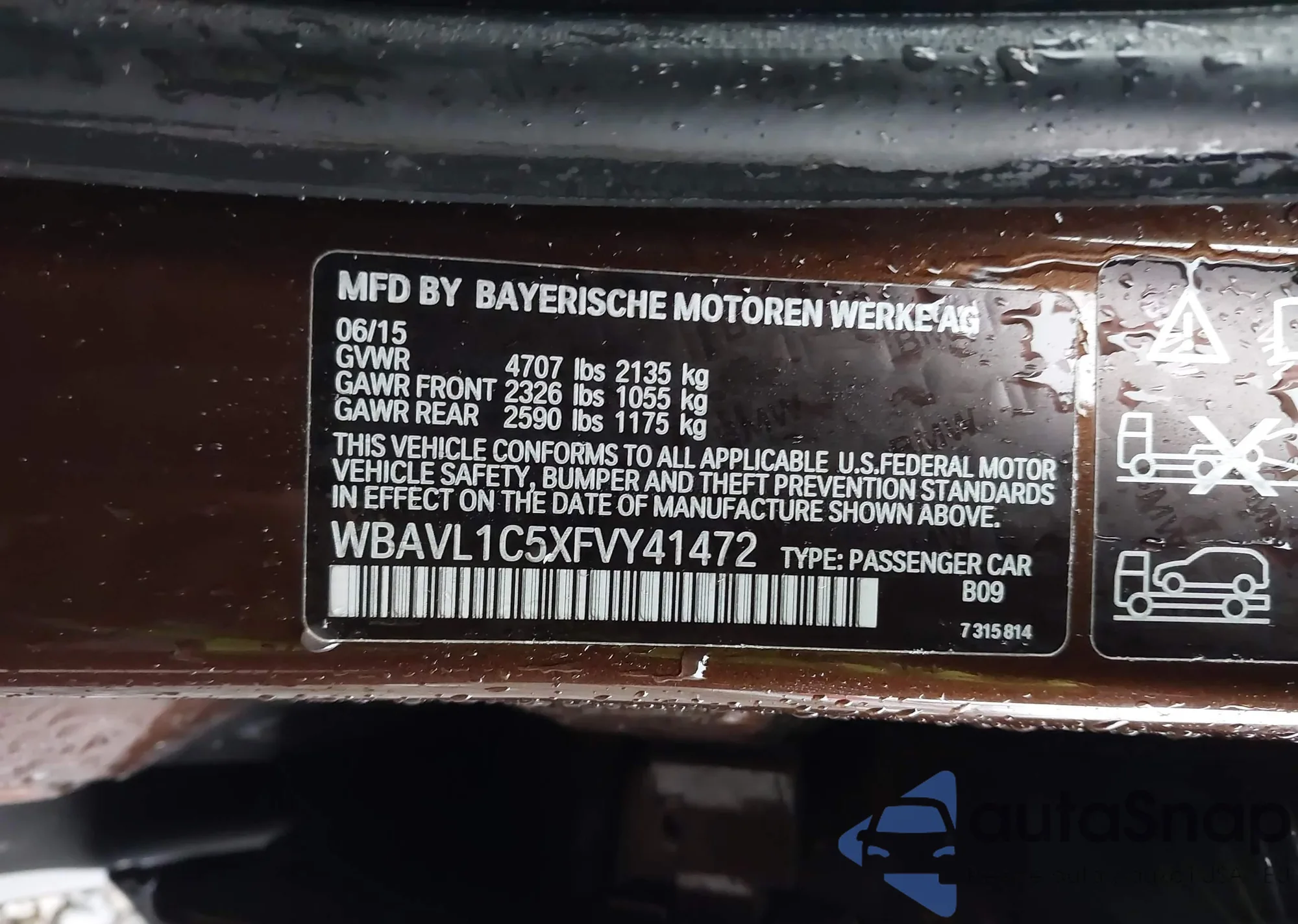 LOT: 43773418 VIN: WBAVL1C5XFVY41472