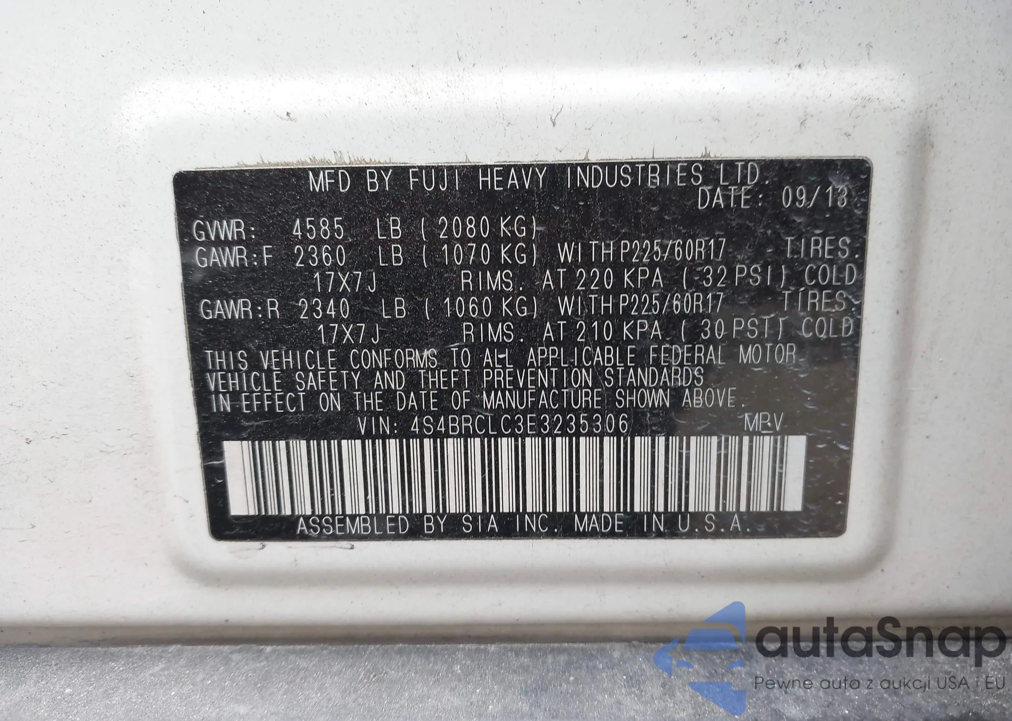 • VIN 4S4BRCLC3E3235306