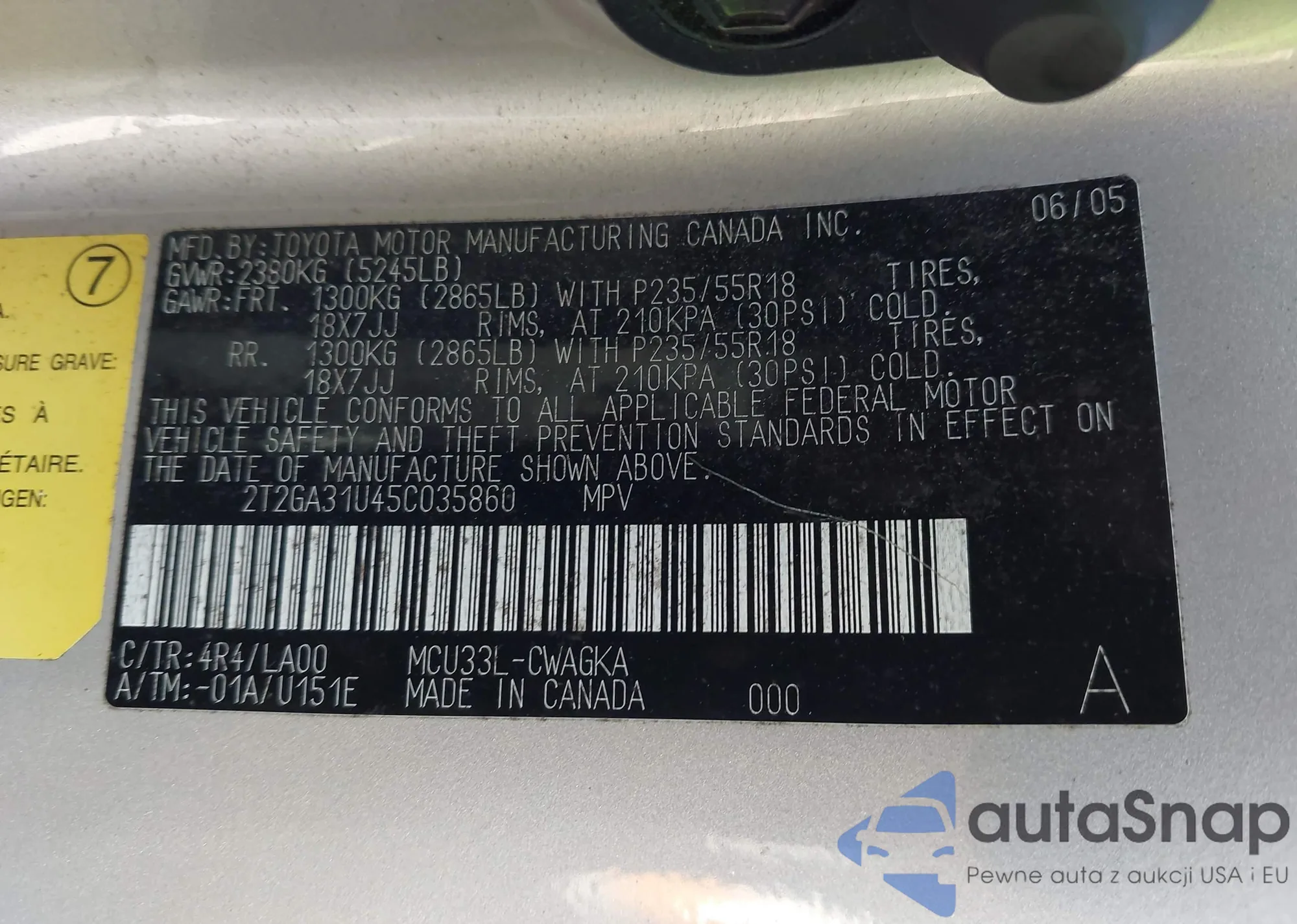 • VIN 4T1DAACK2TU653004