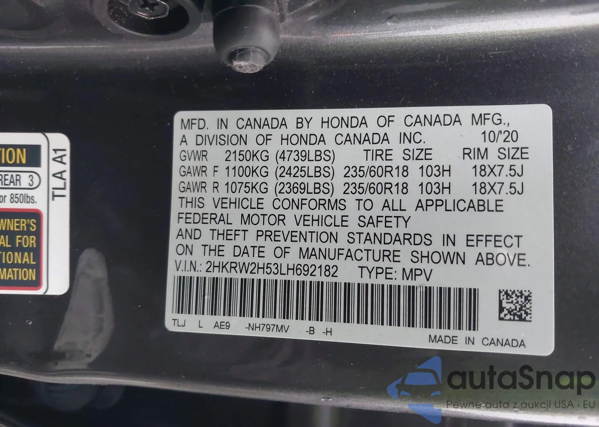 • VIN 2HKRW2H53LH692182