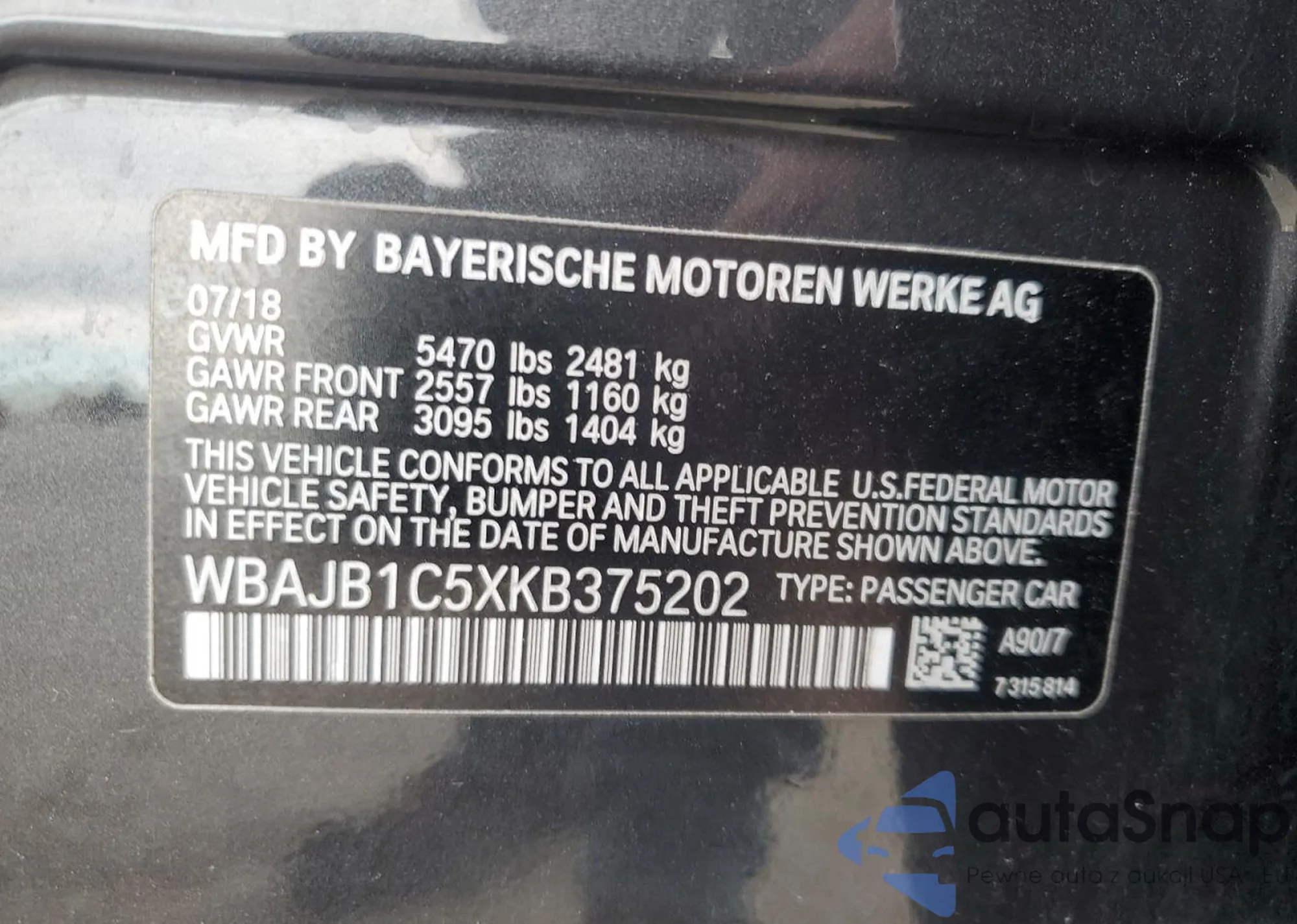 LOT: 67609685 VIN: WBAJE7C58JWC54494