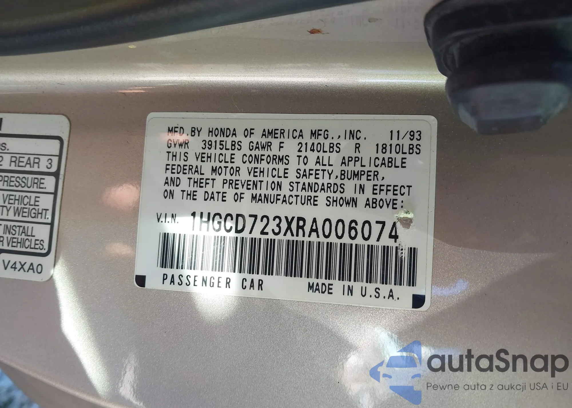 • VIN 1HGCD723XRA006074