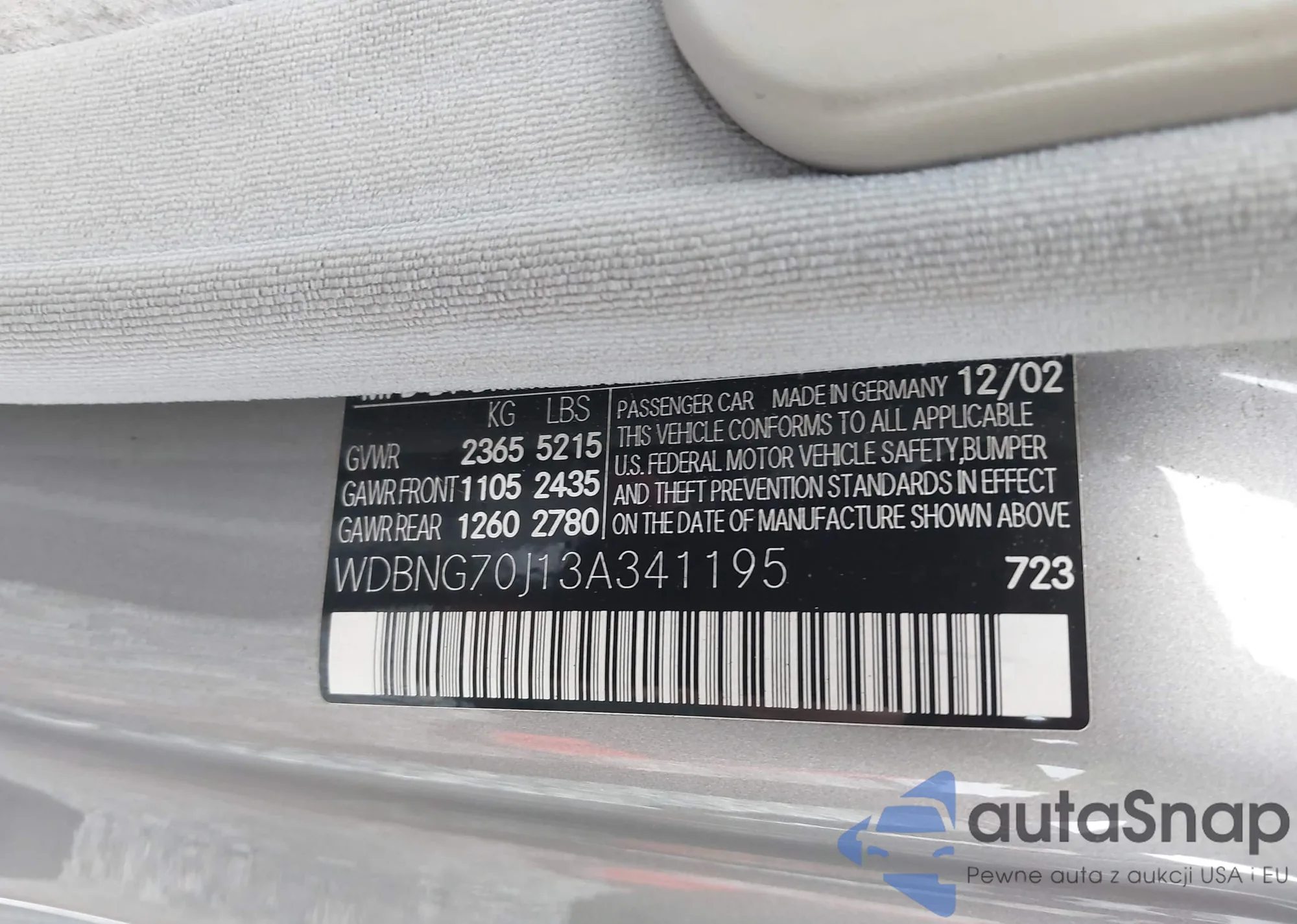 LOT: 43816866 VIN: WBXPC9C47AWJ33526