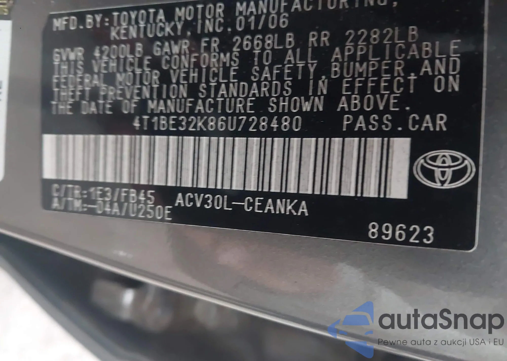 • VIN 4T1BE32K86U728480