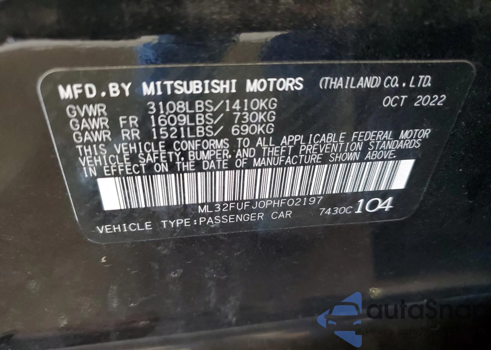 • VIN ML32FUFJ0PHF02197