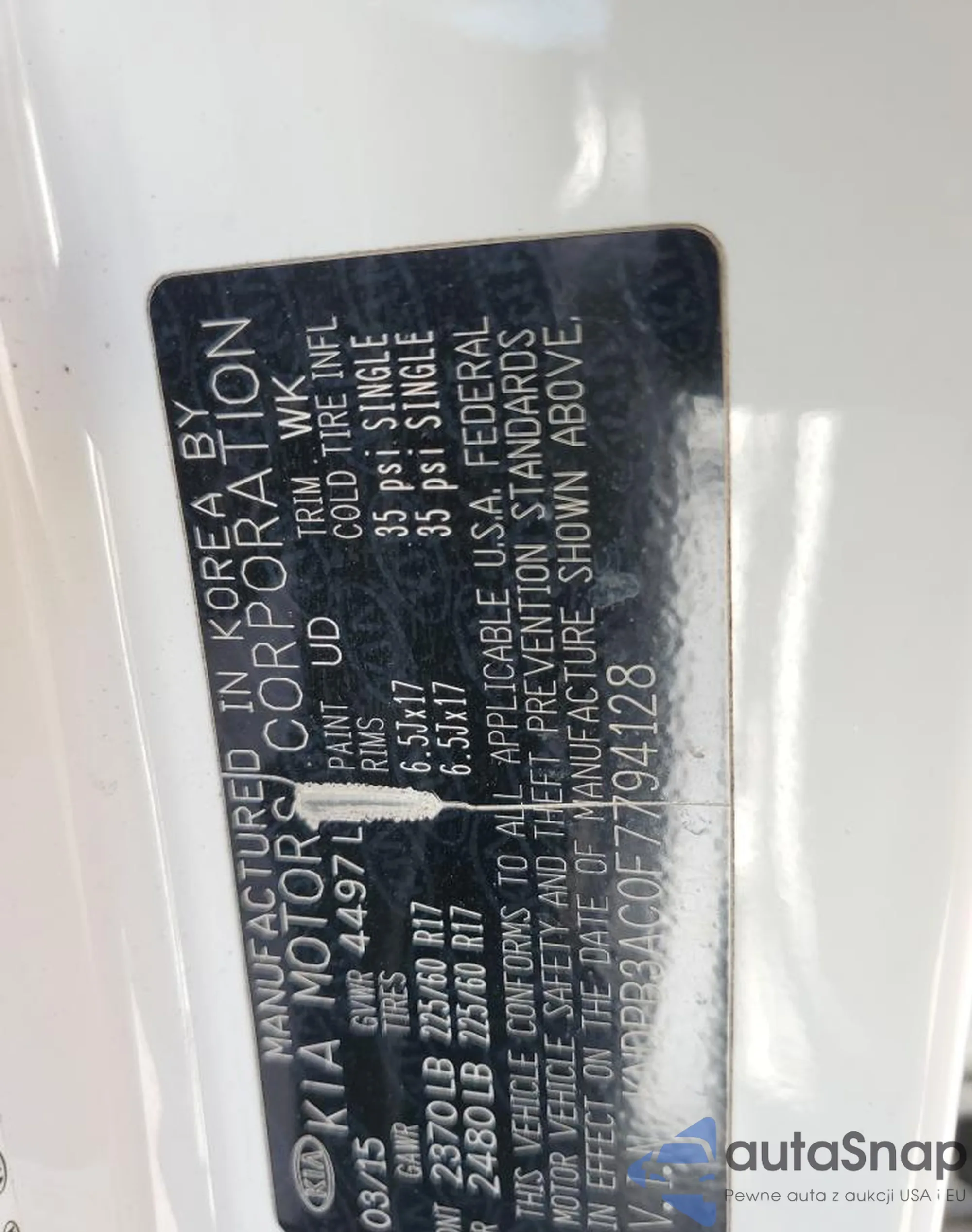 2015 Kia Sportage Lx z USA, uszkodzony, nr VIN KNDPB3AC0F7794128